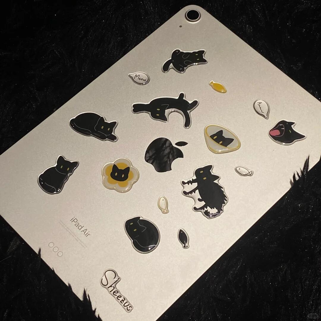 Xiaohongshu의 동일한 스타일 재미있는 검은 고양이 젤리 스티커 접착제 ins 스타일 휴대 전화 케이스 ccdipad 장식 스티커
