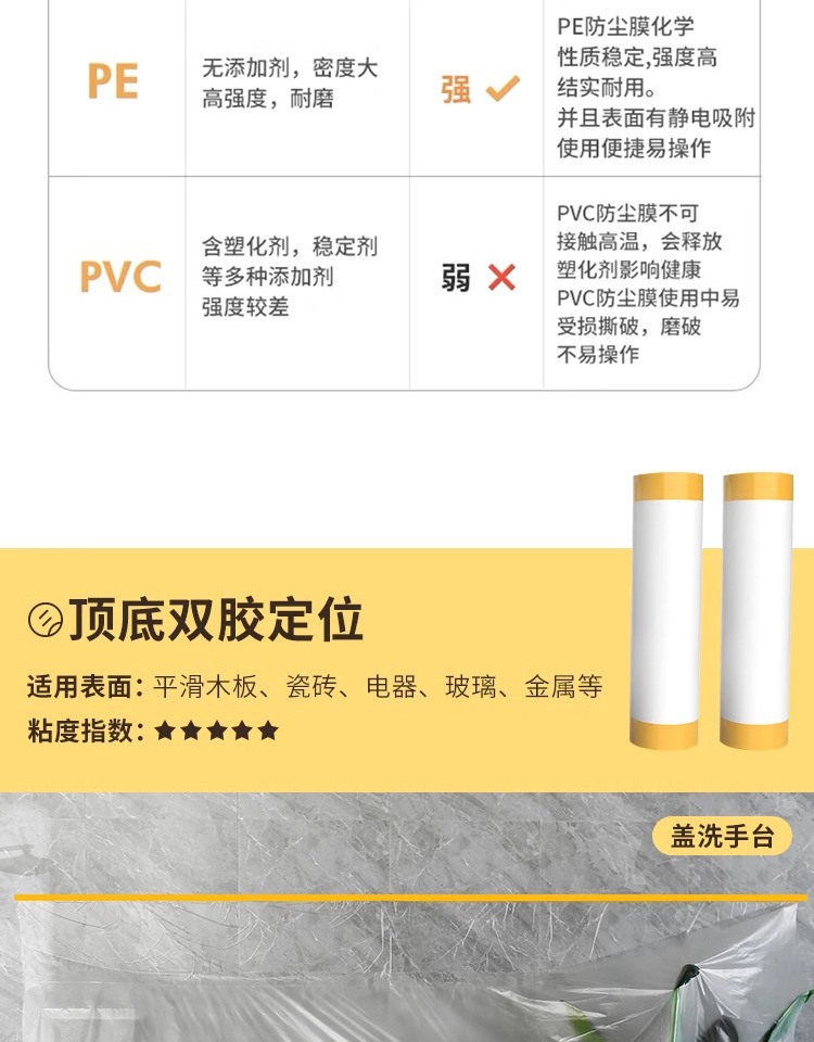 가정용 장식용 이중 접착 방진 필름, 방진 가구 보호 플라스틱 필름, 소파 커버, 기숙사 방진 커버