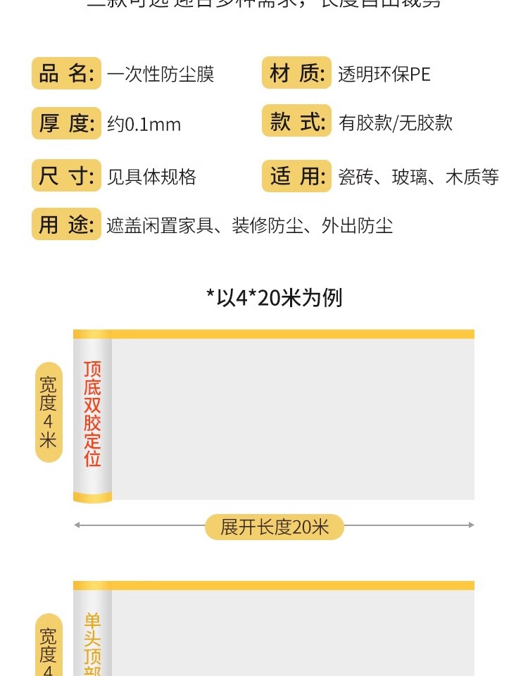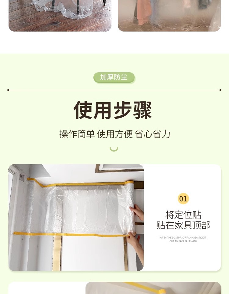 가정용 장식용 이중 접착 방진 필름, 방진 가구 보호 플라스틱 필름, 소파 커버, 기숙사 방진 커버스토어 가기