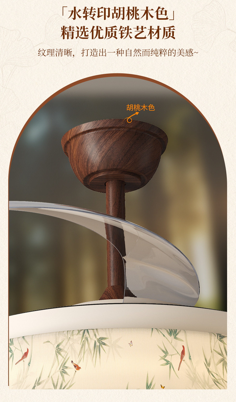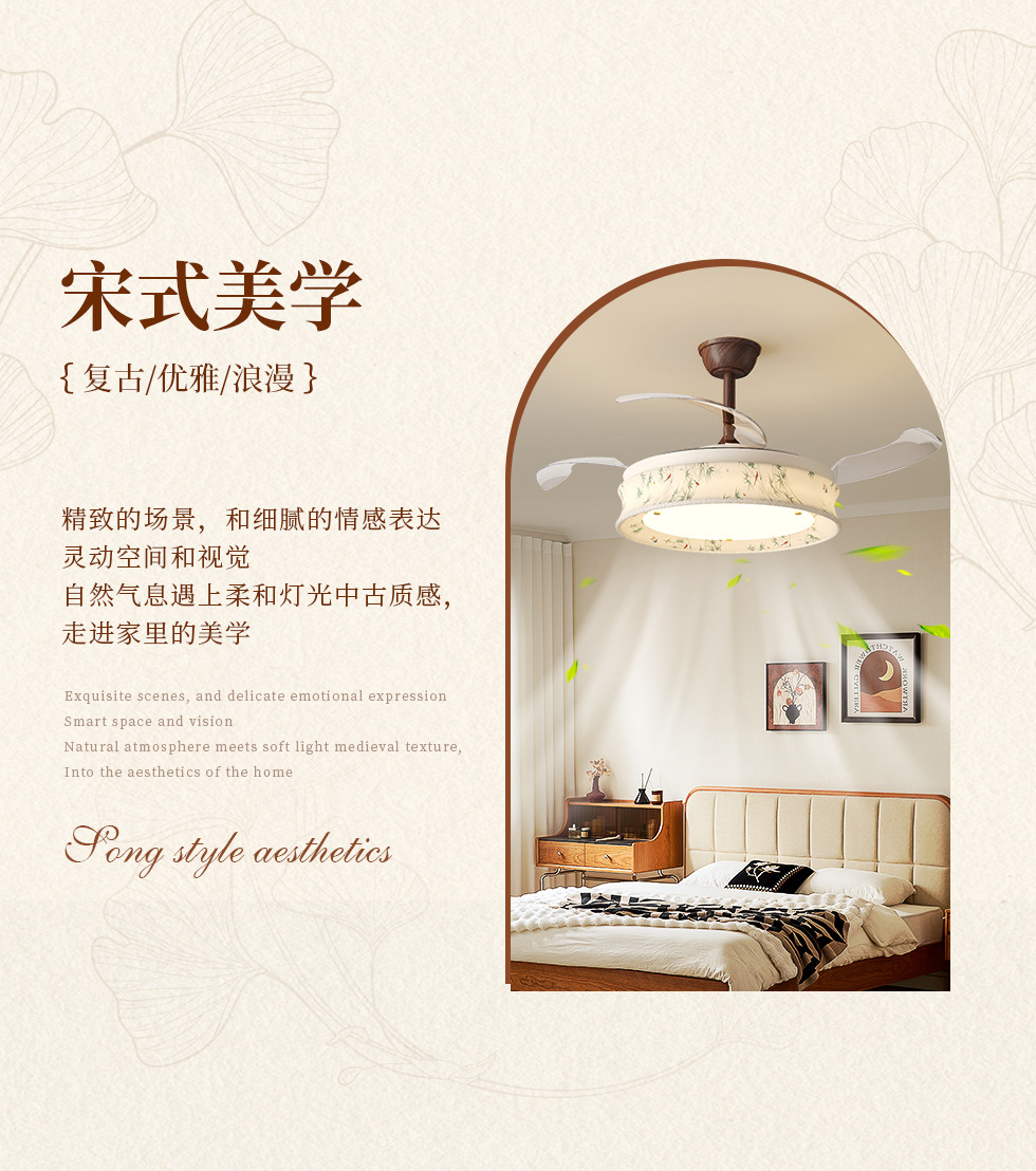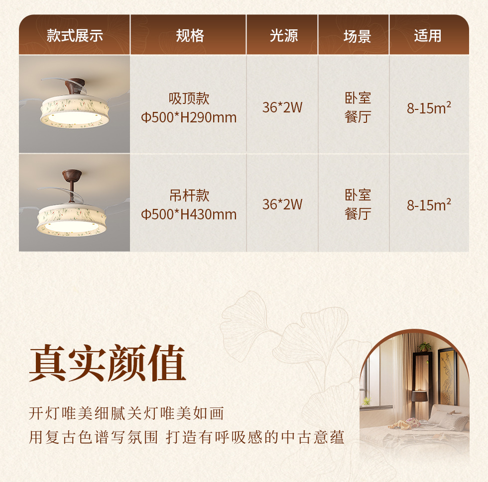 ✅레트로 프랑스 스타일 침실 패브릭 팬 램프 인쇄 중간 고대 거실 다이닝 룸 바 천장 팬 램프 중산 램프스토어 가기