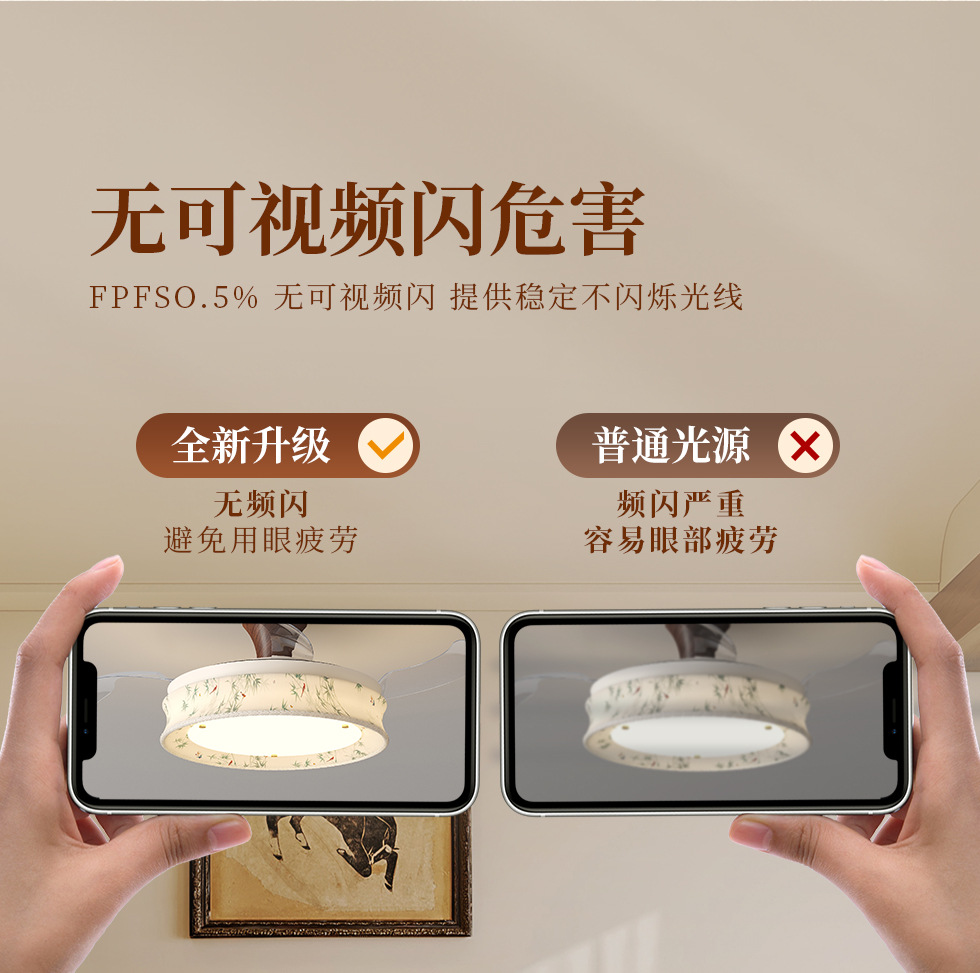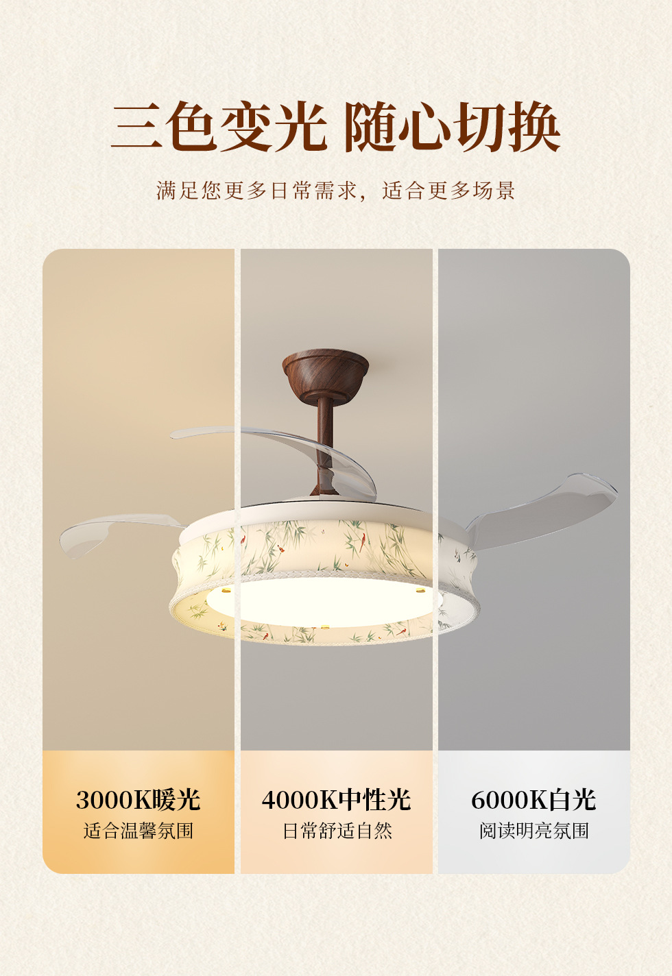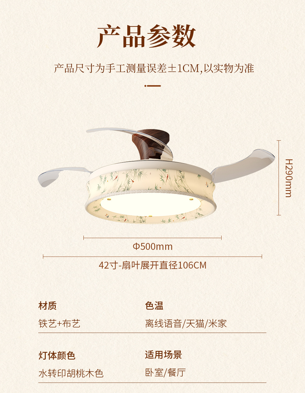 ✅레트로 프랑스 스타일 침실 패브릭 팬 램프 인쇄 중간 고대 거실 다이닝 룸 바 천장 팬 램프 중산 램프스토어 가기