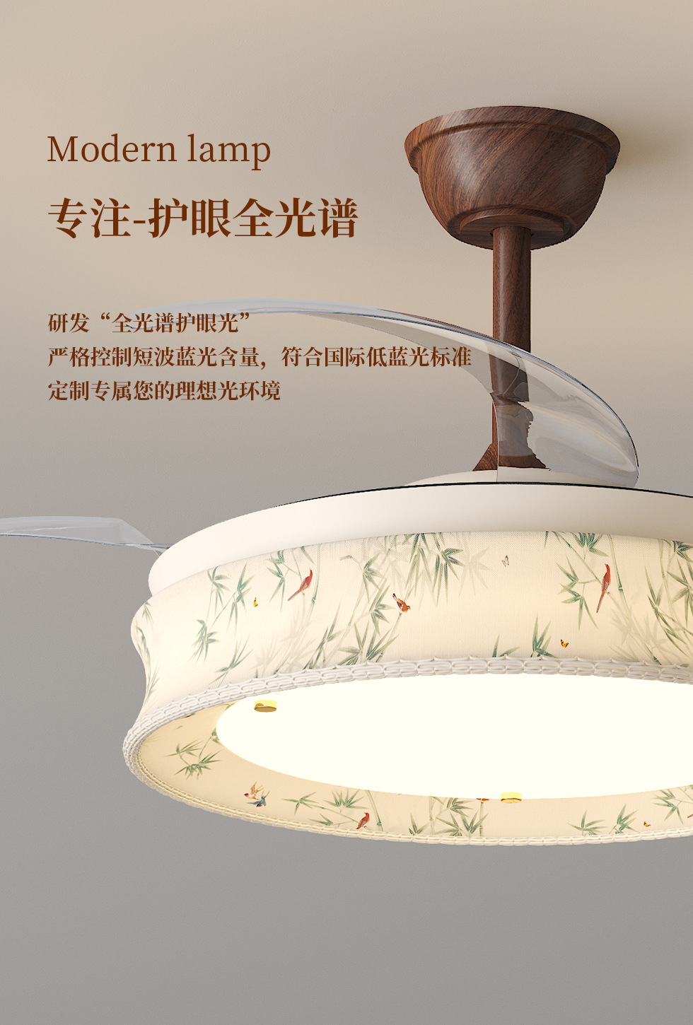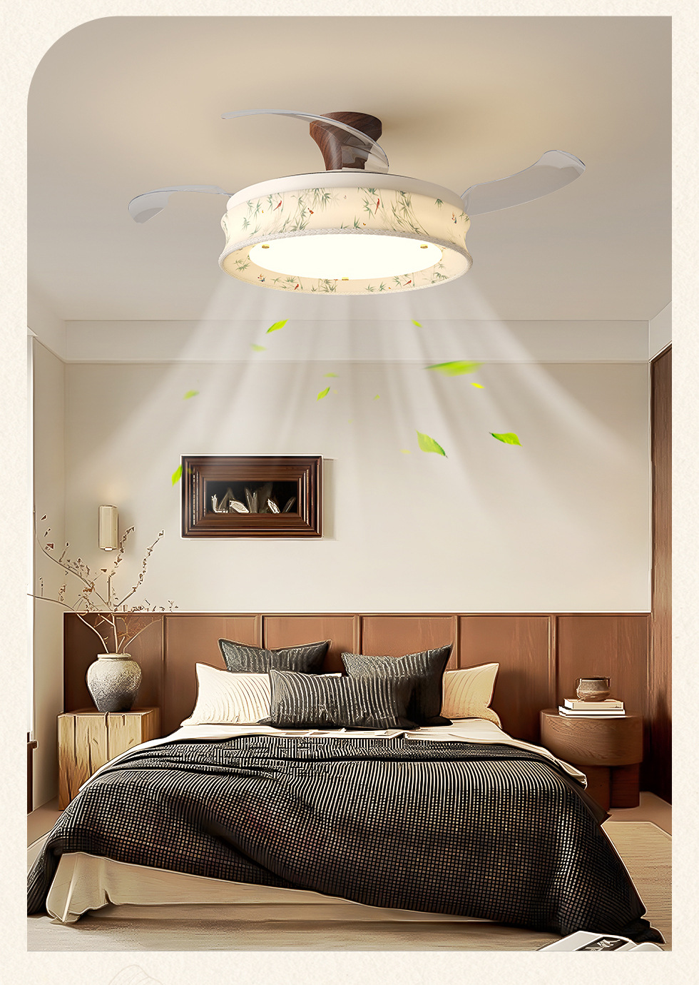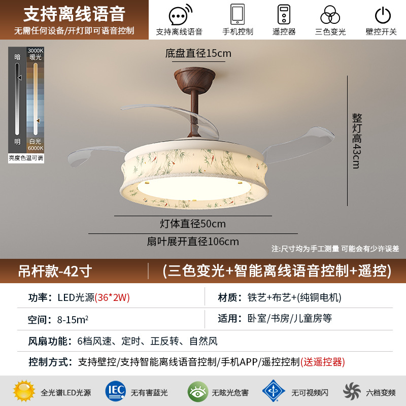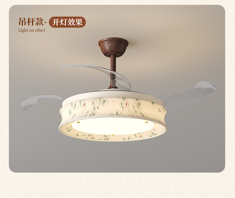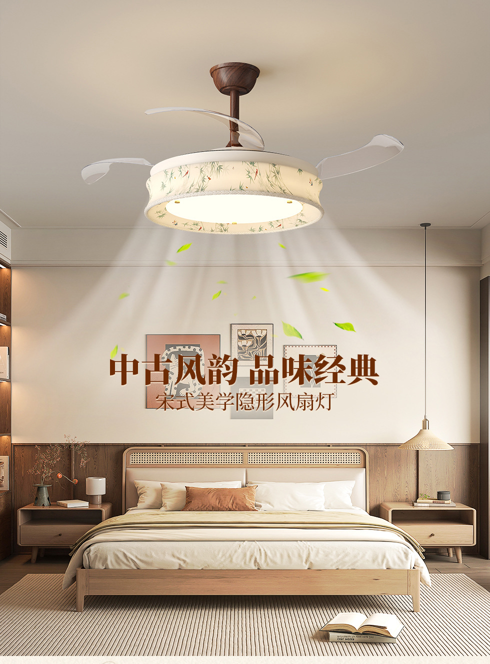 ✅레트로 프랑스 스타일 침실 패브릭 팬 램프 인쇄 중간 고대 거실 다이닝 룸 바 천장 팬 램프 중산 램프