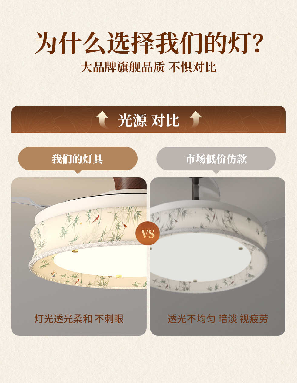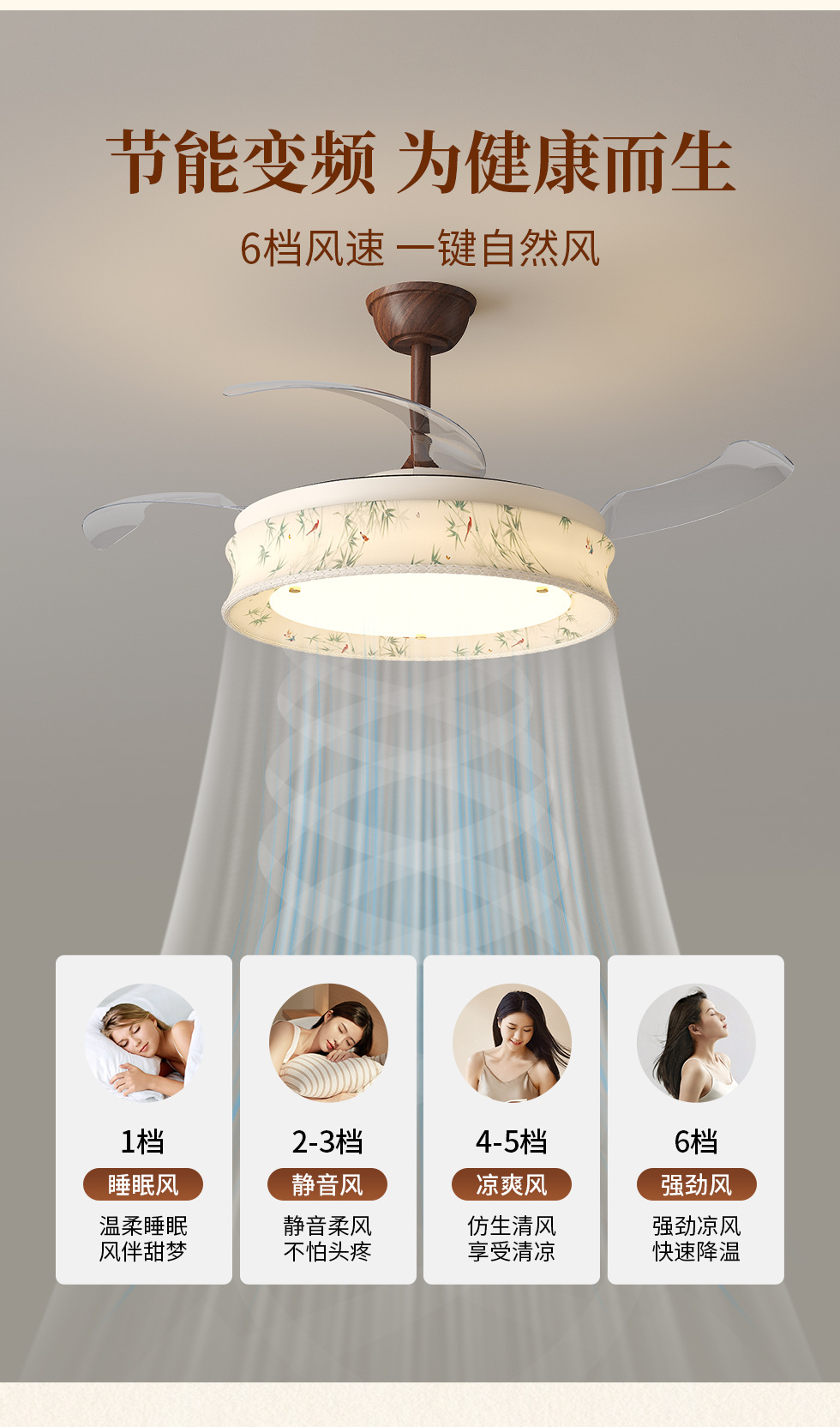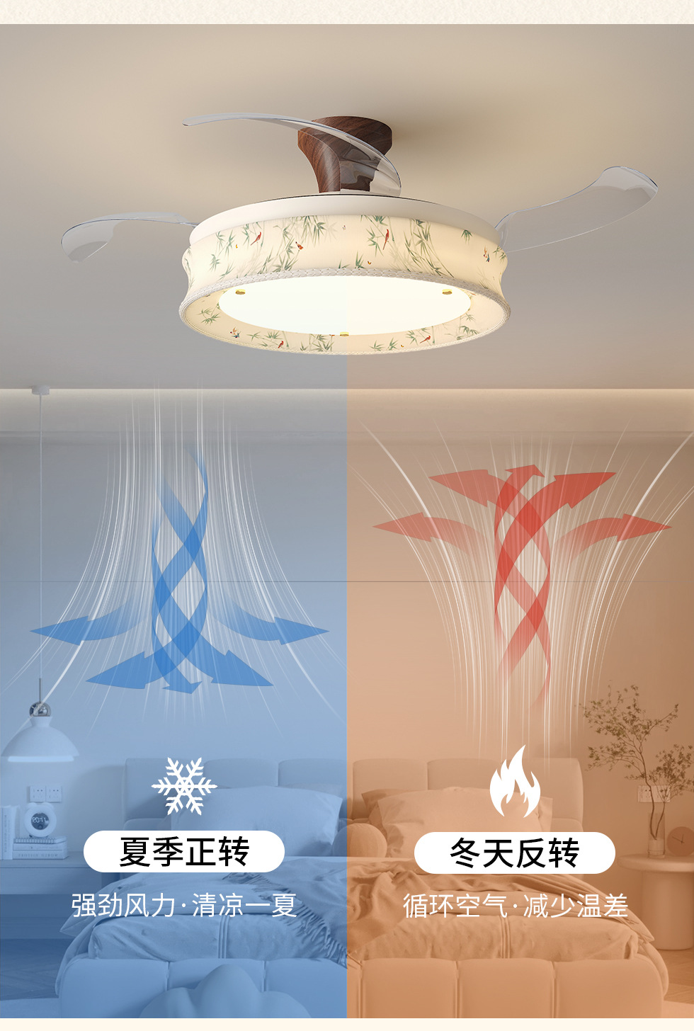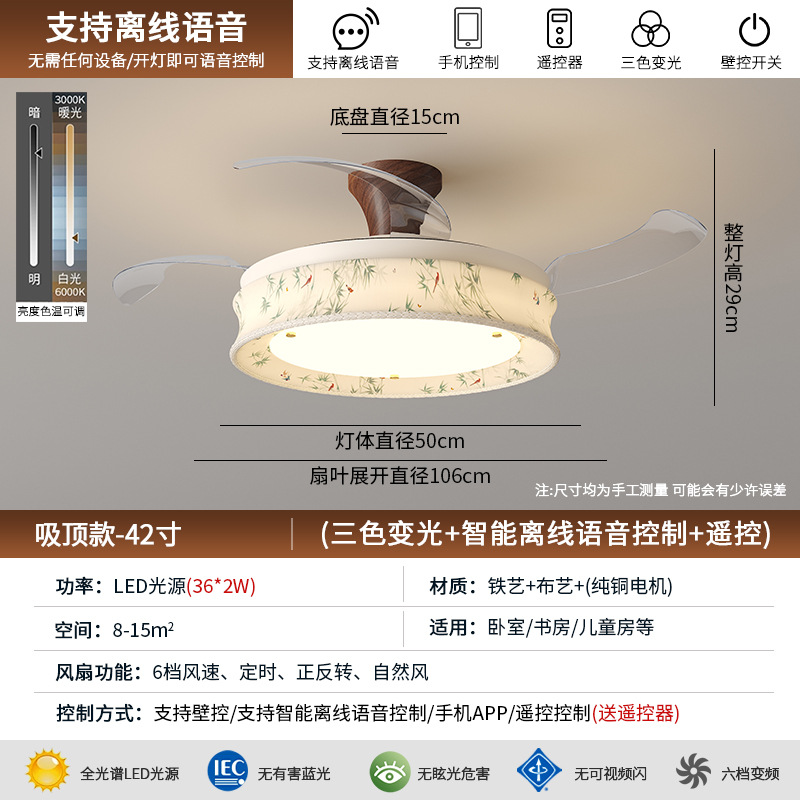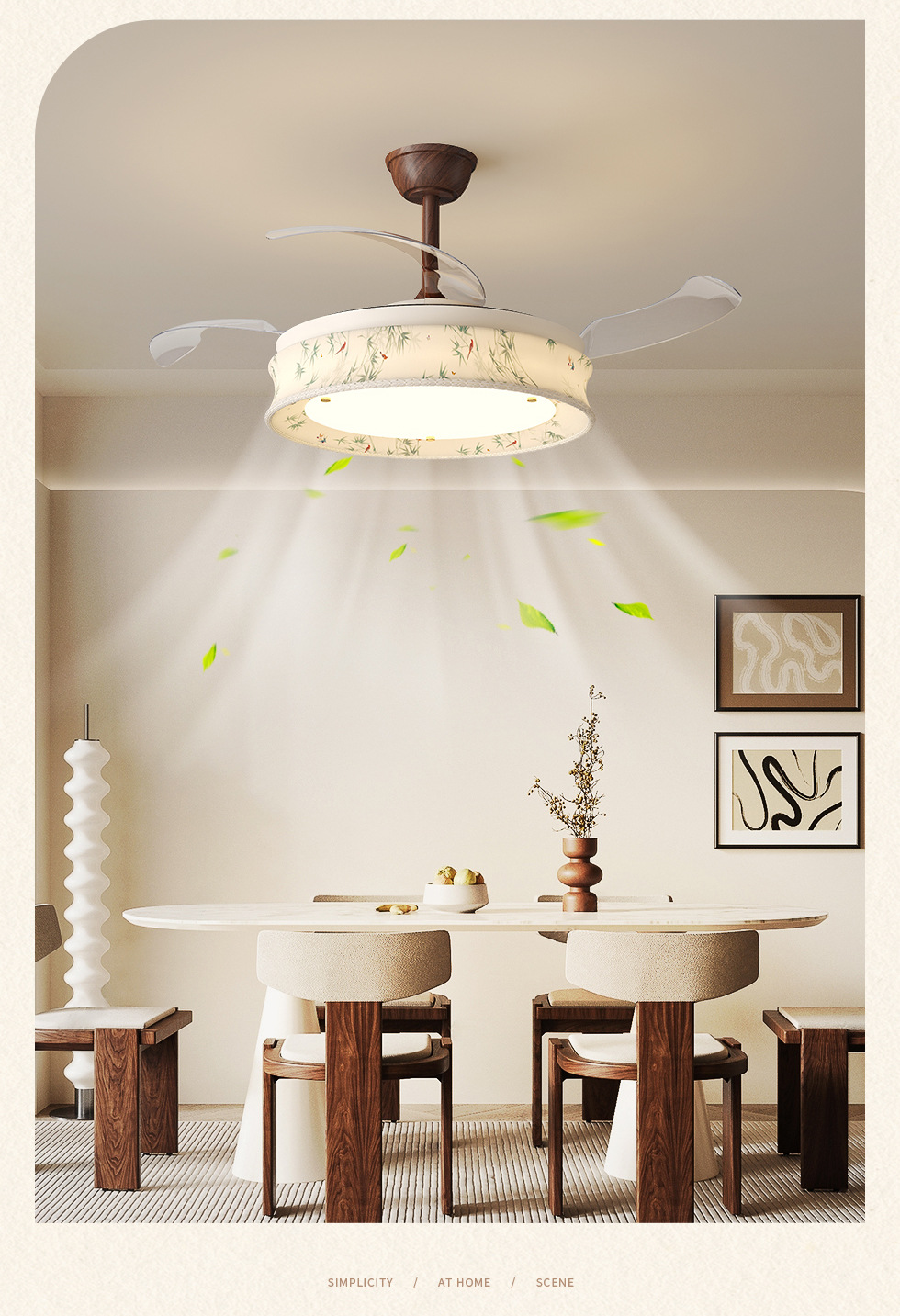✅레트로 프랑스 스타일 침실 패브릭 팬 램프 인쇄 중간 고대 거실 다이닝 룸 바 천장 팬 램프 중산 램프
