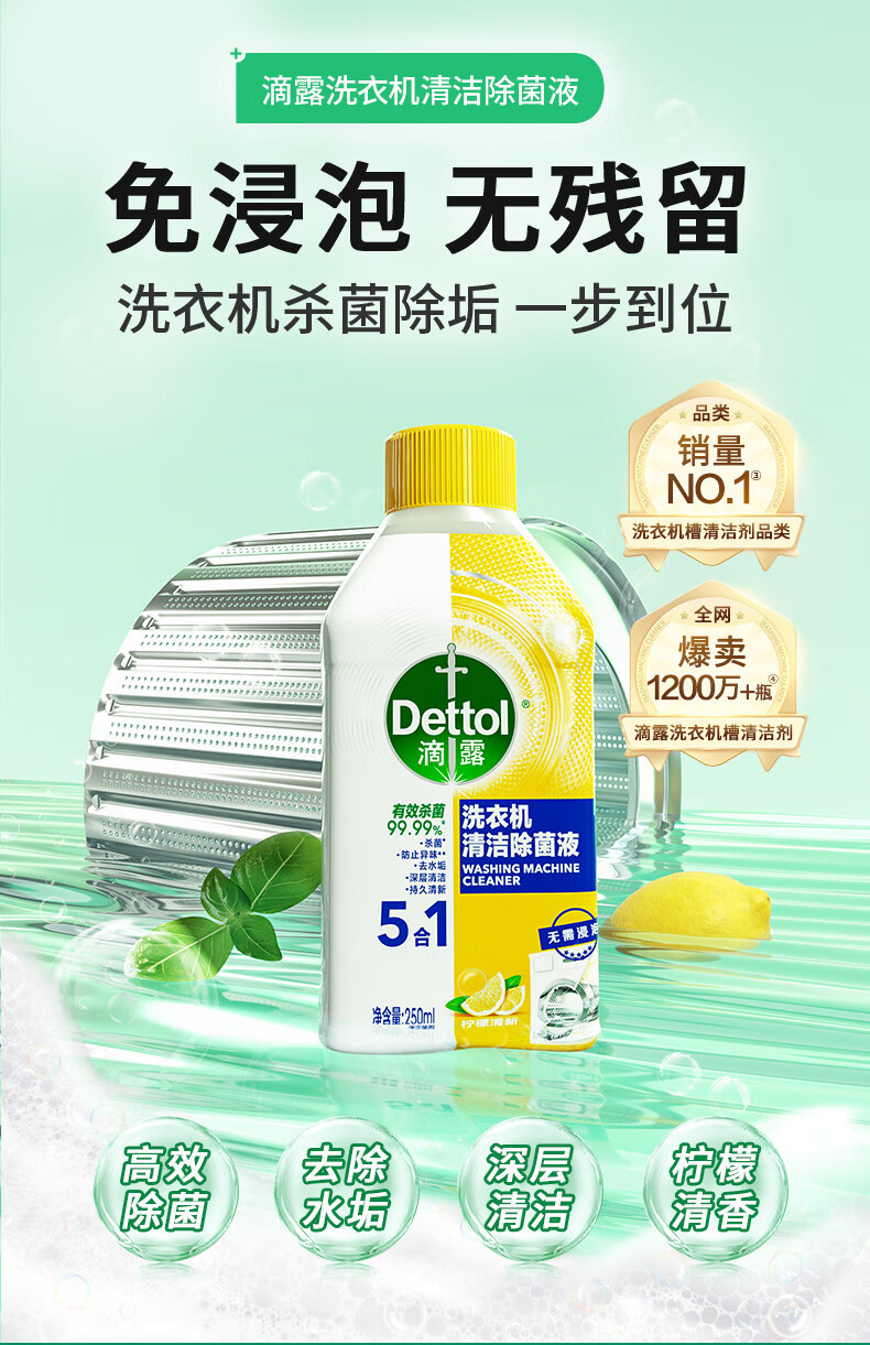 Dettol 세탁기 클리너 클리너 레몬 프레쉬 250ml 소독 세탁기 탱크 살균 액체 도매 공동 구매