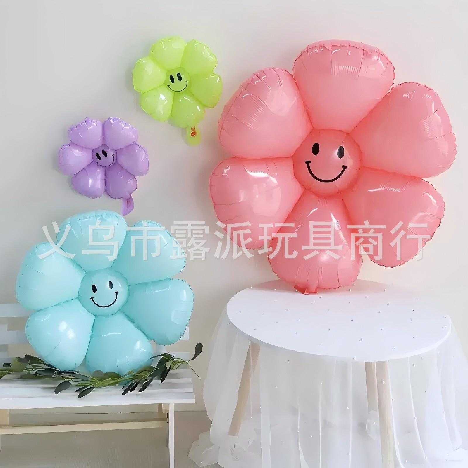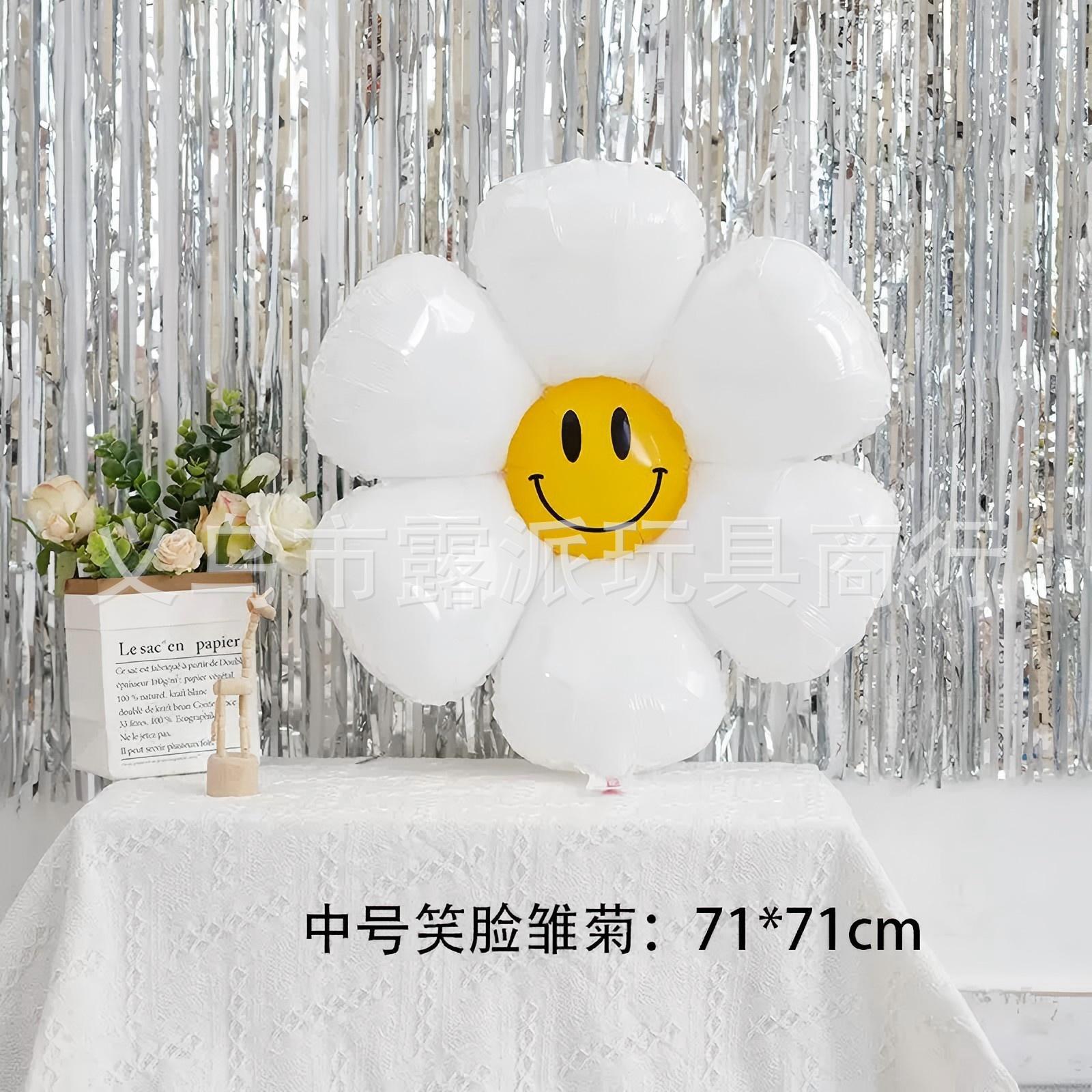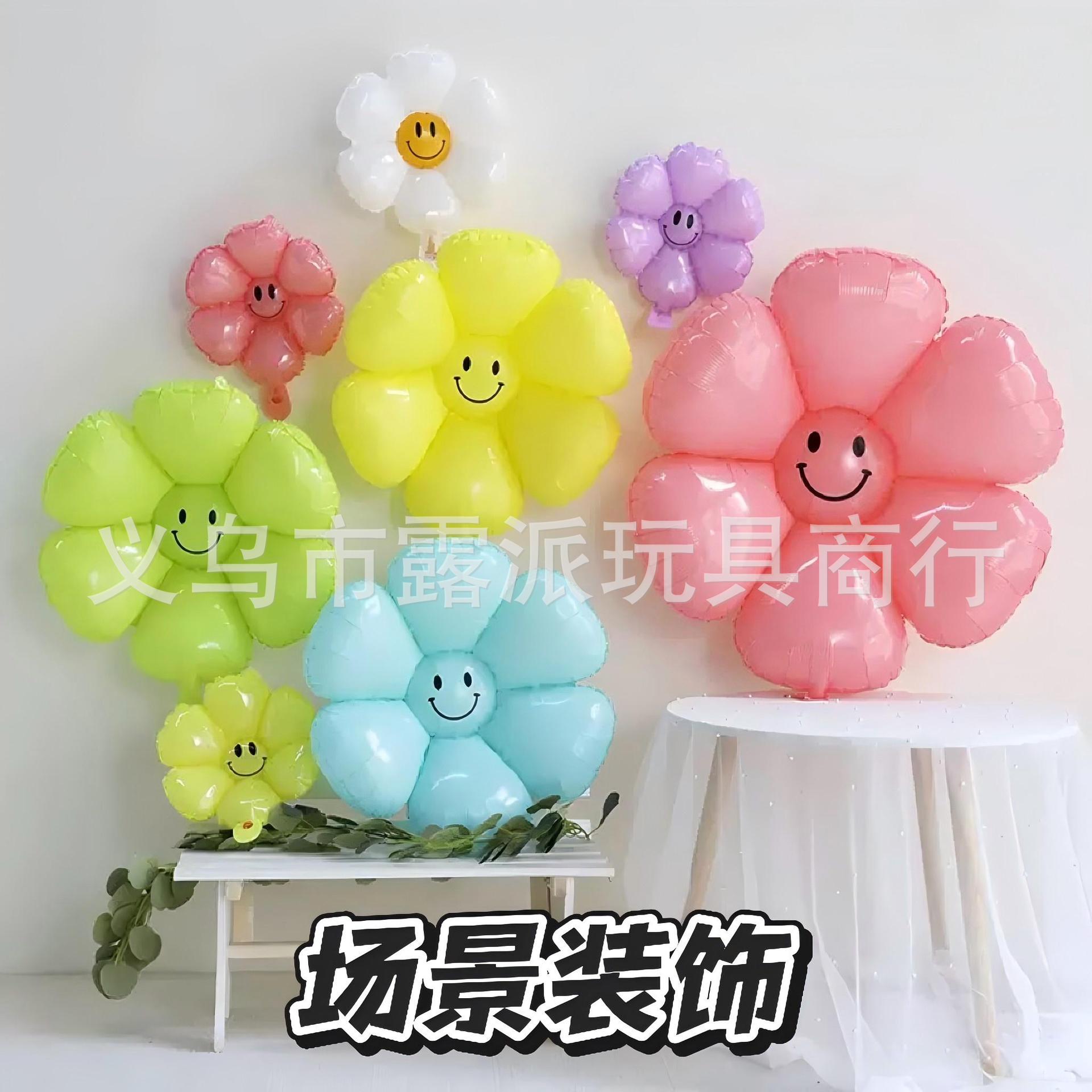인터넷 빨간 만화 데이지 큰 스몰 사이즈 마카롱 웃는 해바라기 풍선 라운드 알루미늄 필름 생일 장식