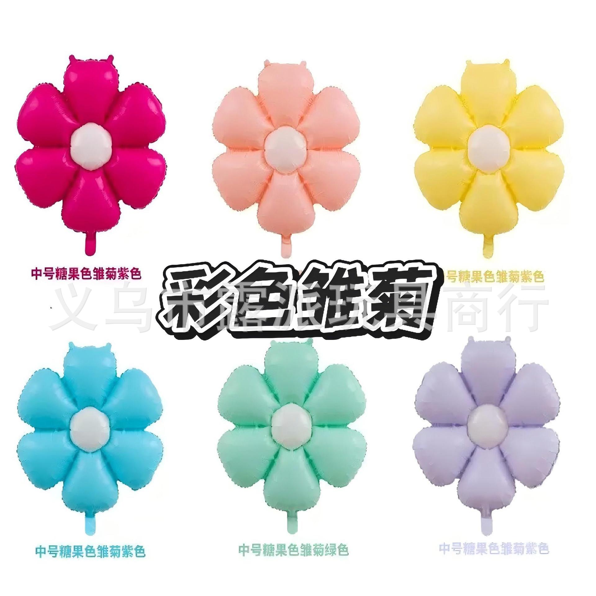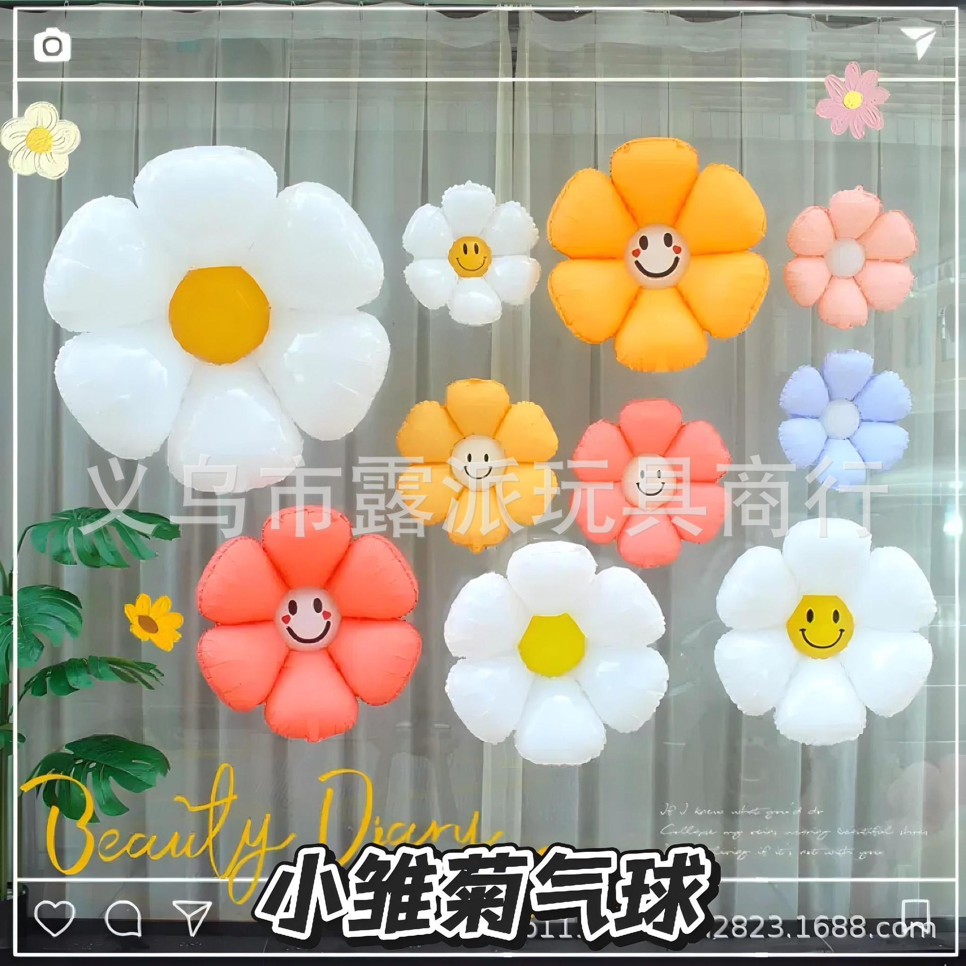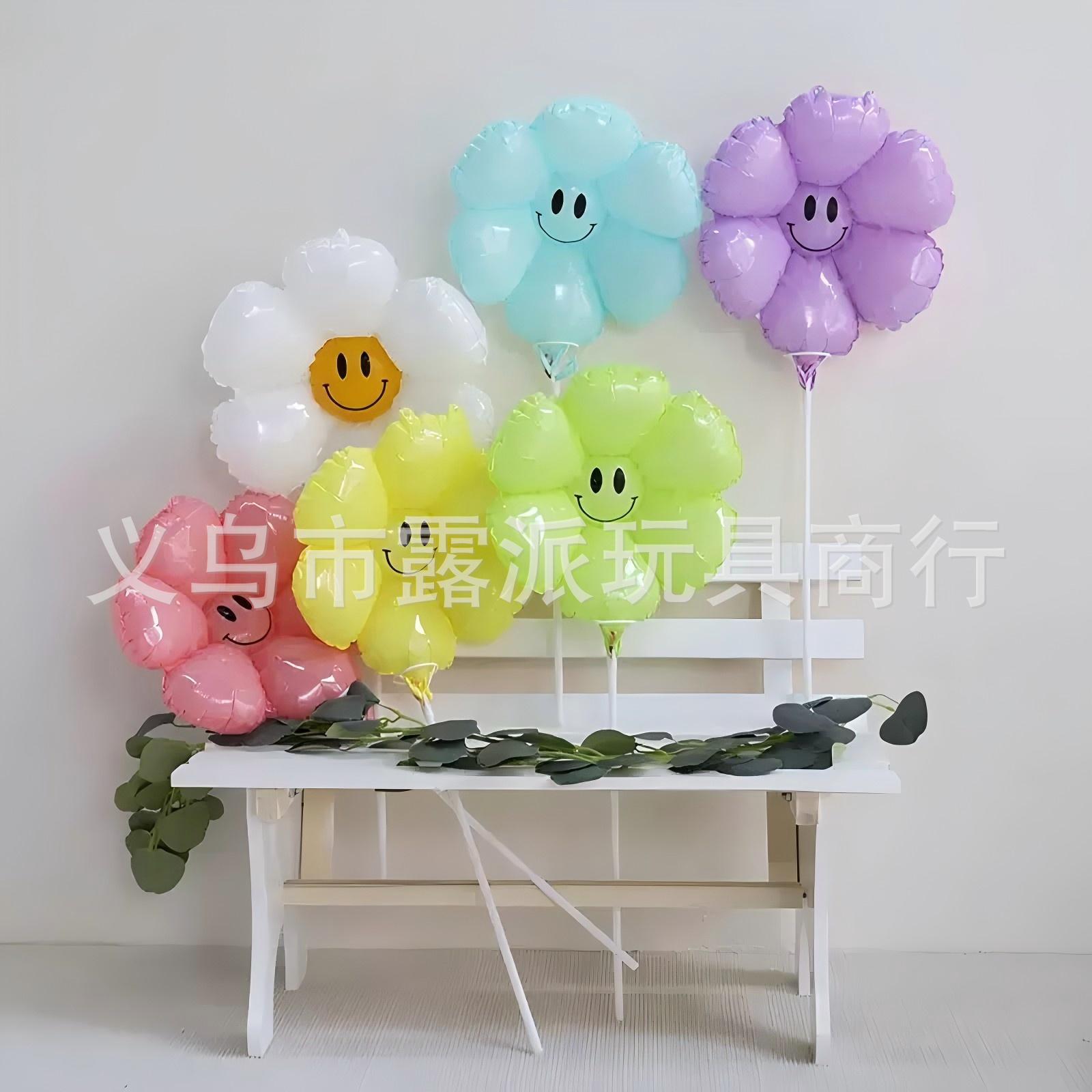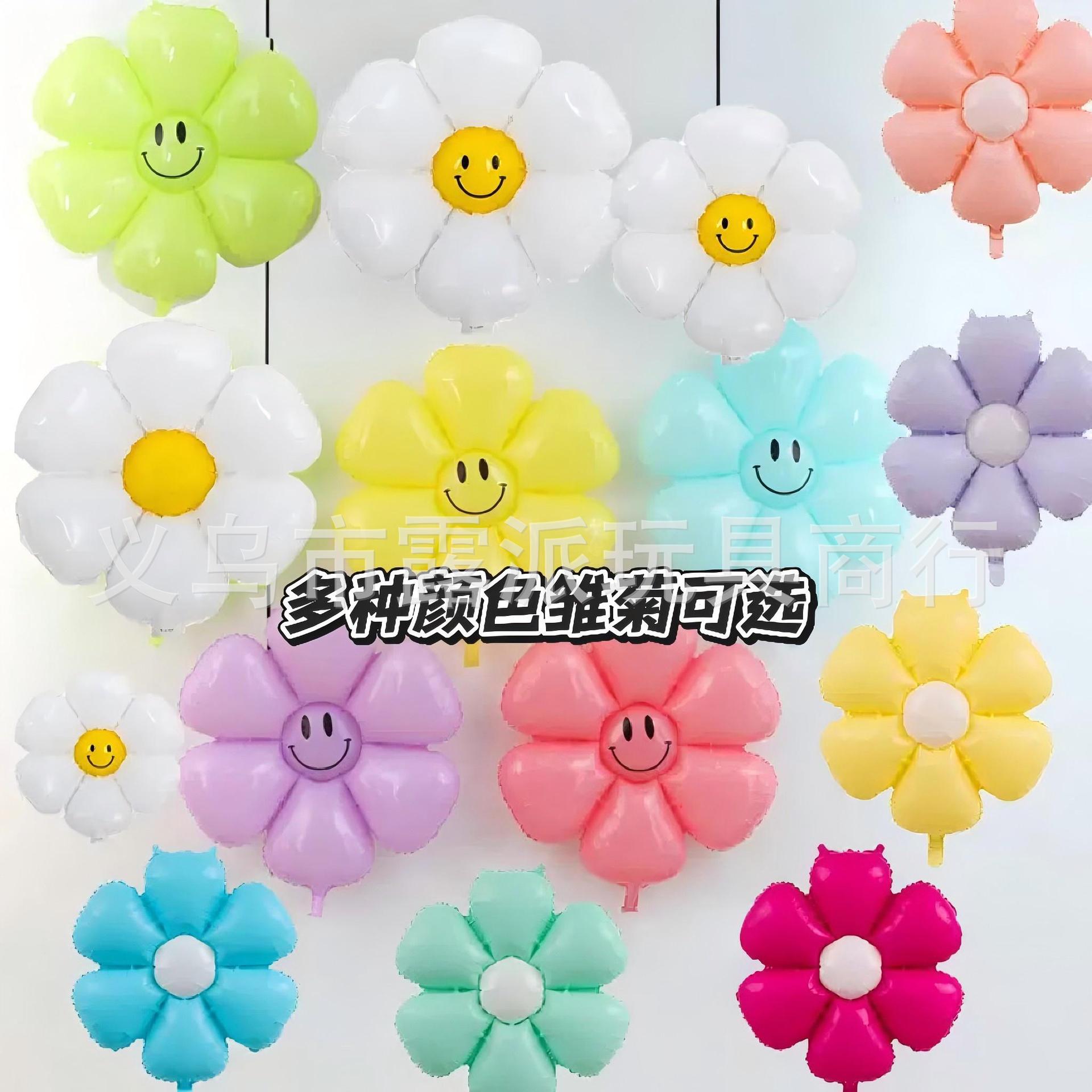 인터넷 빨간 만화 데이지 큰 스몰 사이즈 마카롱 웃는 해바라기 풍선 라운드 알루미늄 필름 생일 장식