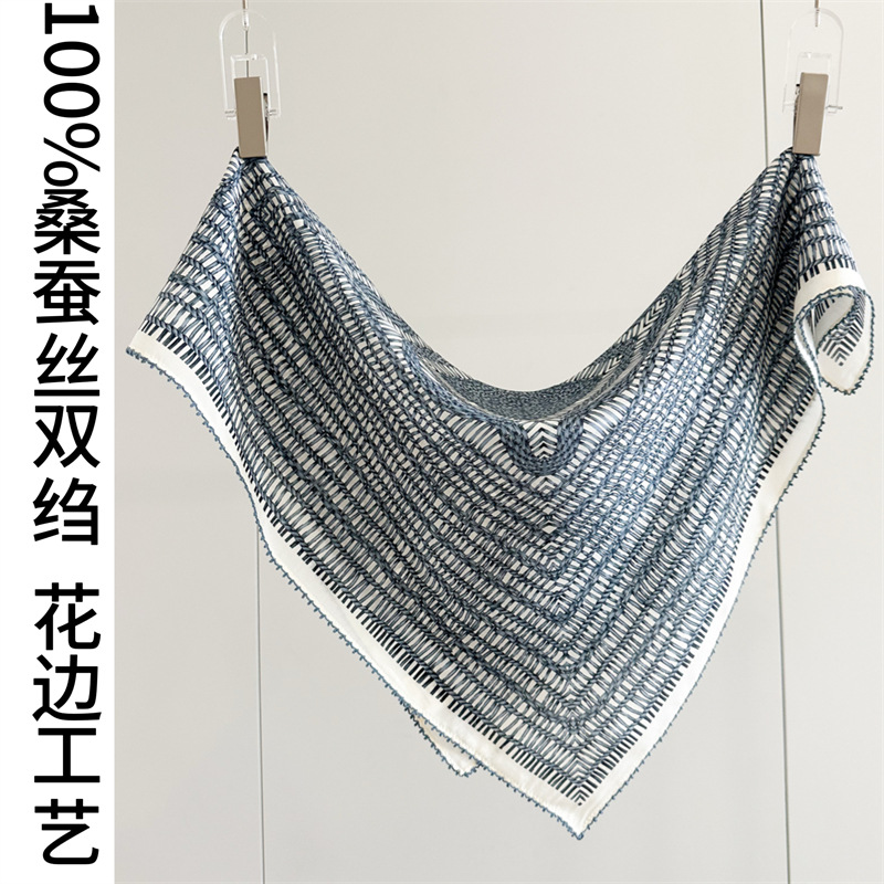 봄과 여름 경량 실크 크레페 드 친 레이스 중간 스퀘어 스카프 스타일 짠 스타일 뽕나무 실크 스카프 목도리 스카프