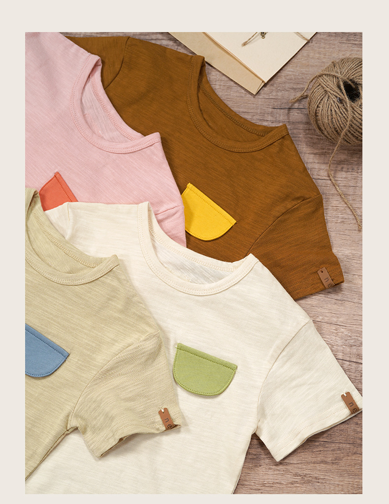 네자 미니 어린이 티셔츠 슬러브면 소녀 한국식 짧은 소매 여름 새 소년 둥근 목 어린이 반소매