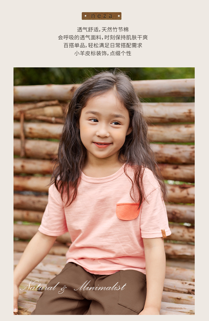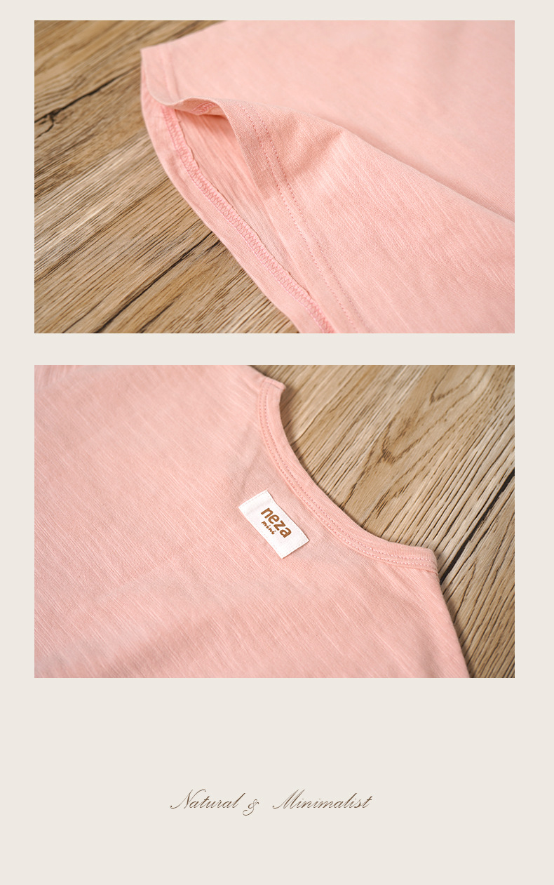 네자 미니 어린이 티셔츠 슬러브면 소녀 한국식 짧은 소매 여름 새 소년 둥근 목 어린이 반소매스토어 가기