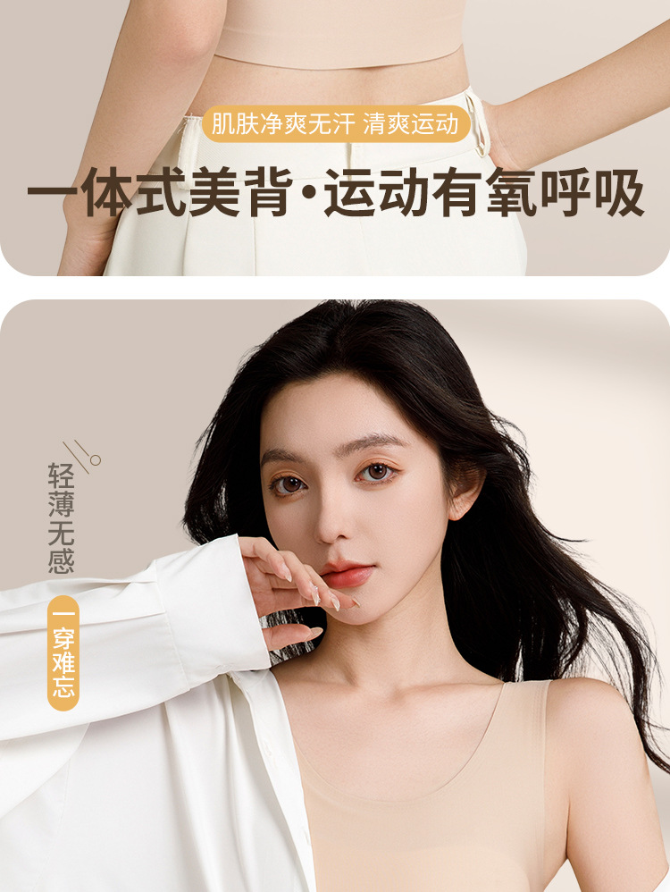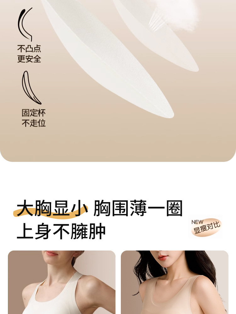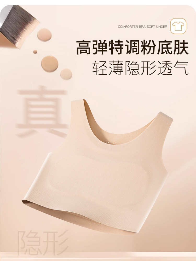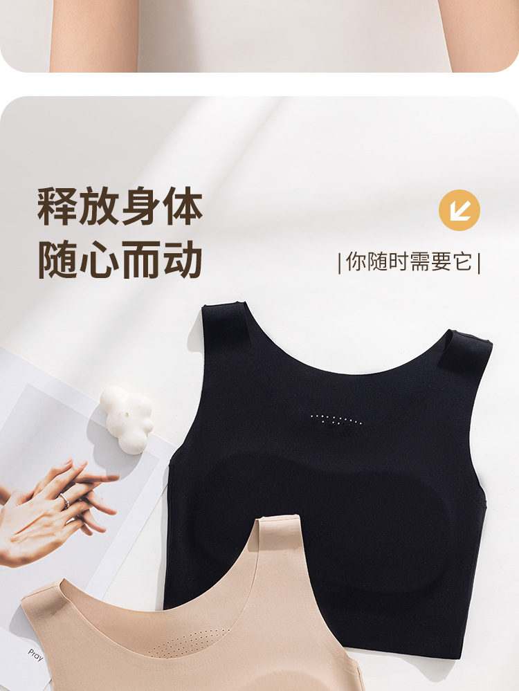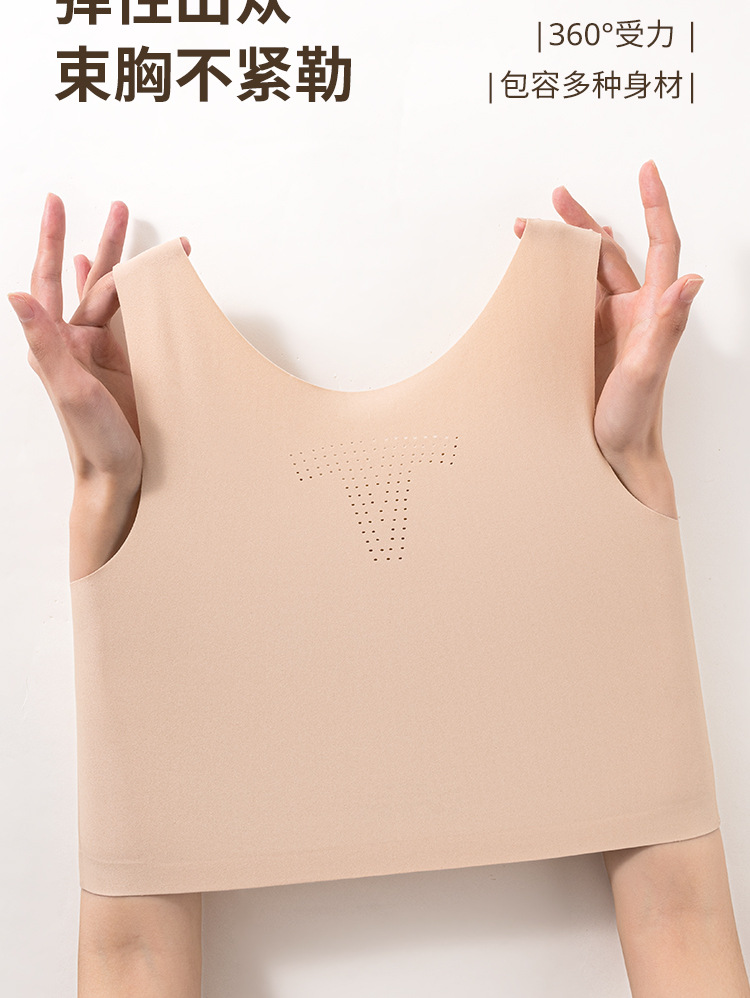 가슴이 큰 여성을 위한 심리스 인비저블 리퀴드 파운데이션 브라, 작은 가슴, 돌출 방지, 통기성, 누드 느낌, 통기성 조끼 스타일 브라