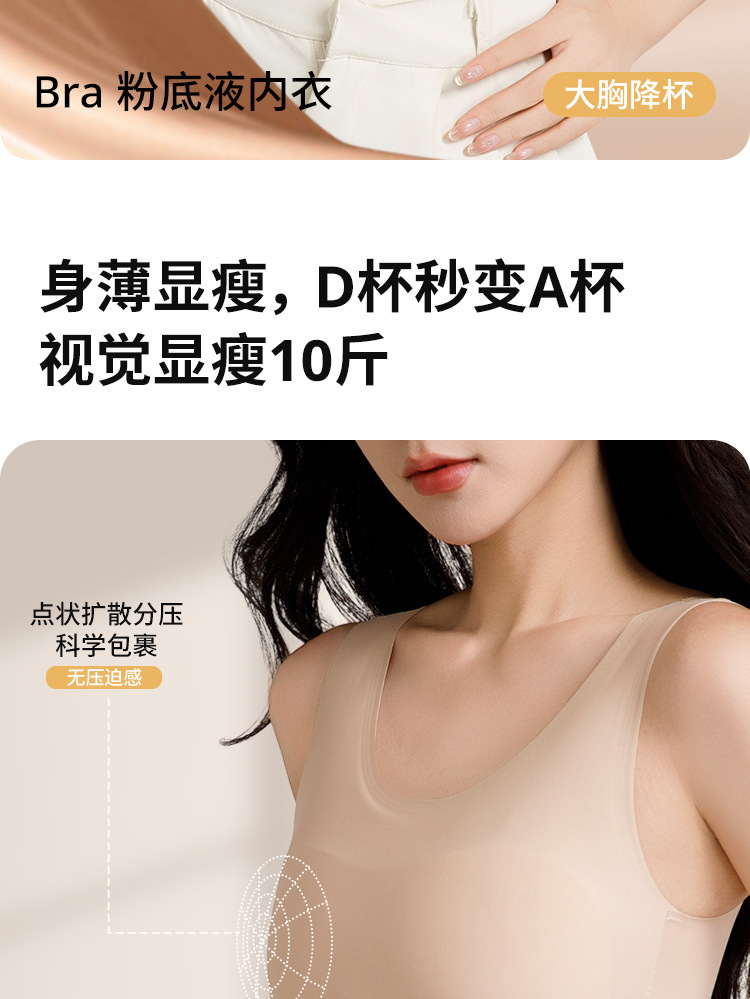 가슴이 큰 여성을 위한 심리스 인비저블 리퀴드 파운데이션 브라, 작은 가슴, 돌출 방지, 통기성, 누드 느낌, 통기성 조끼 스타일 브라스토어 가기