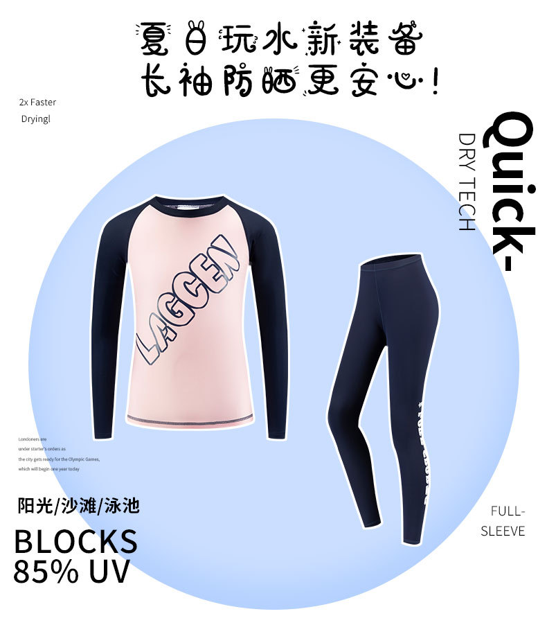여아 수영복 스플릿 긴팔 자외선 차단 중대형 아동 사각팬티 아동 속건 투피스 학생 수영복 도매