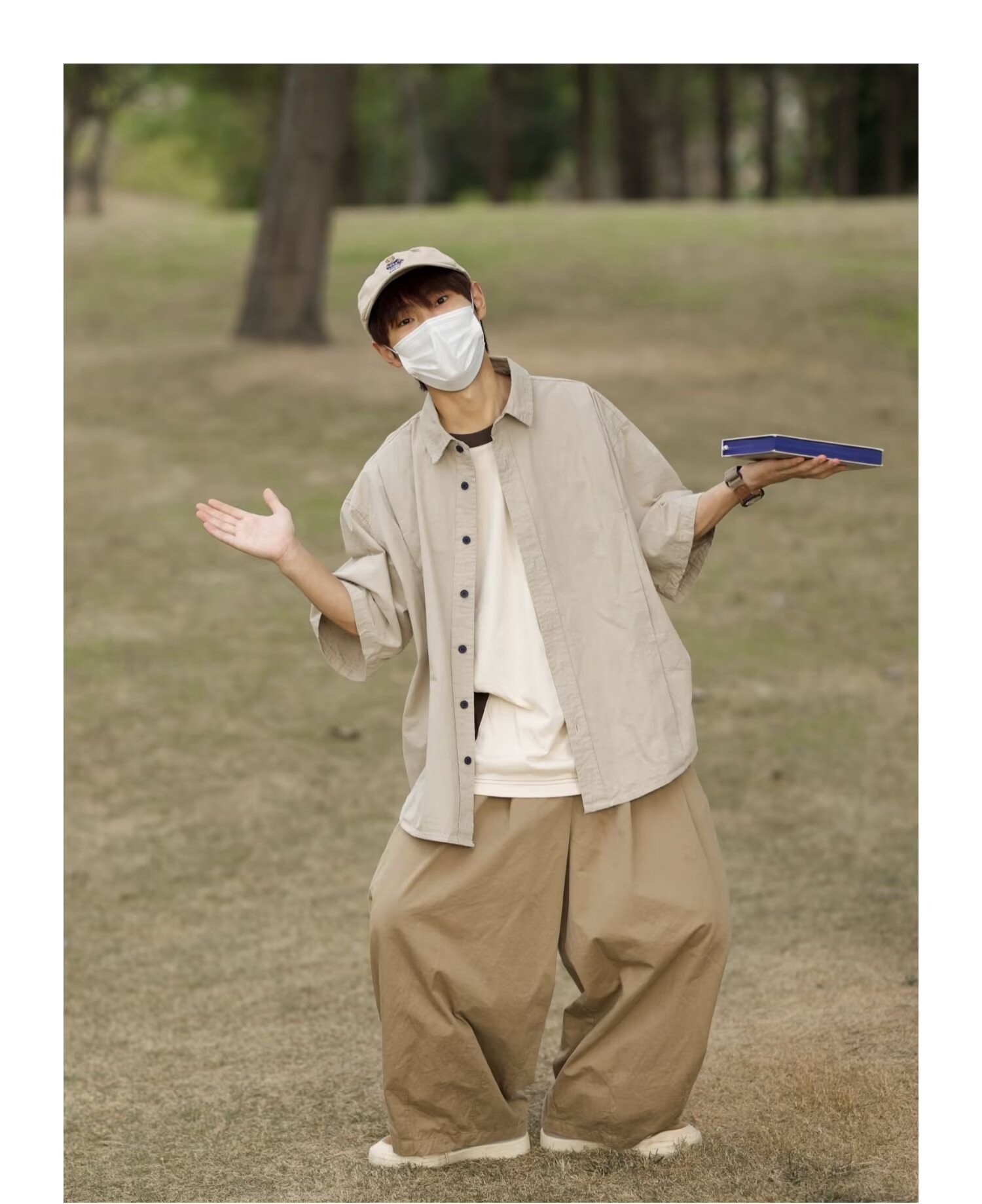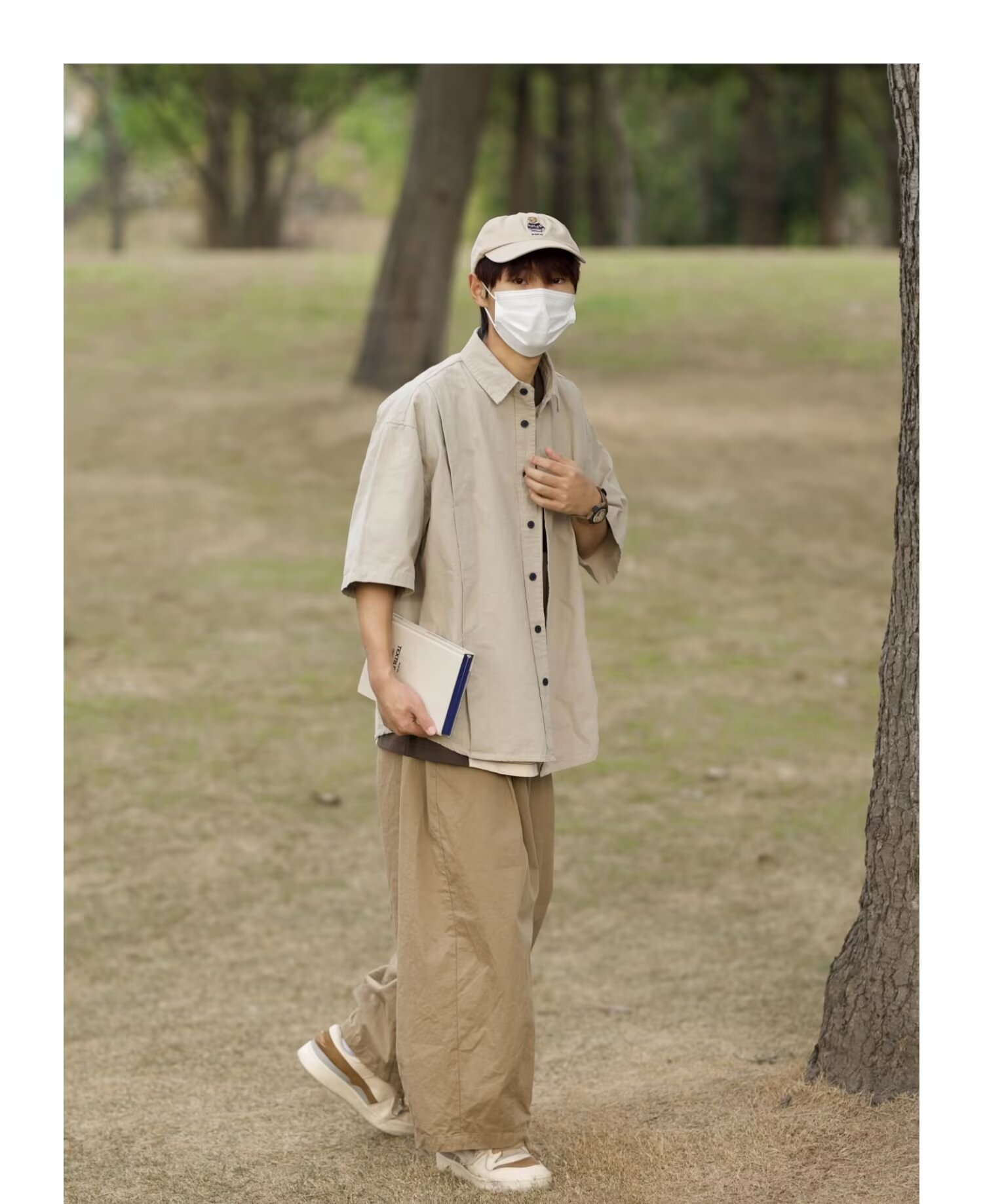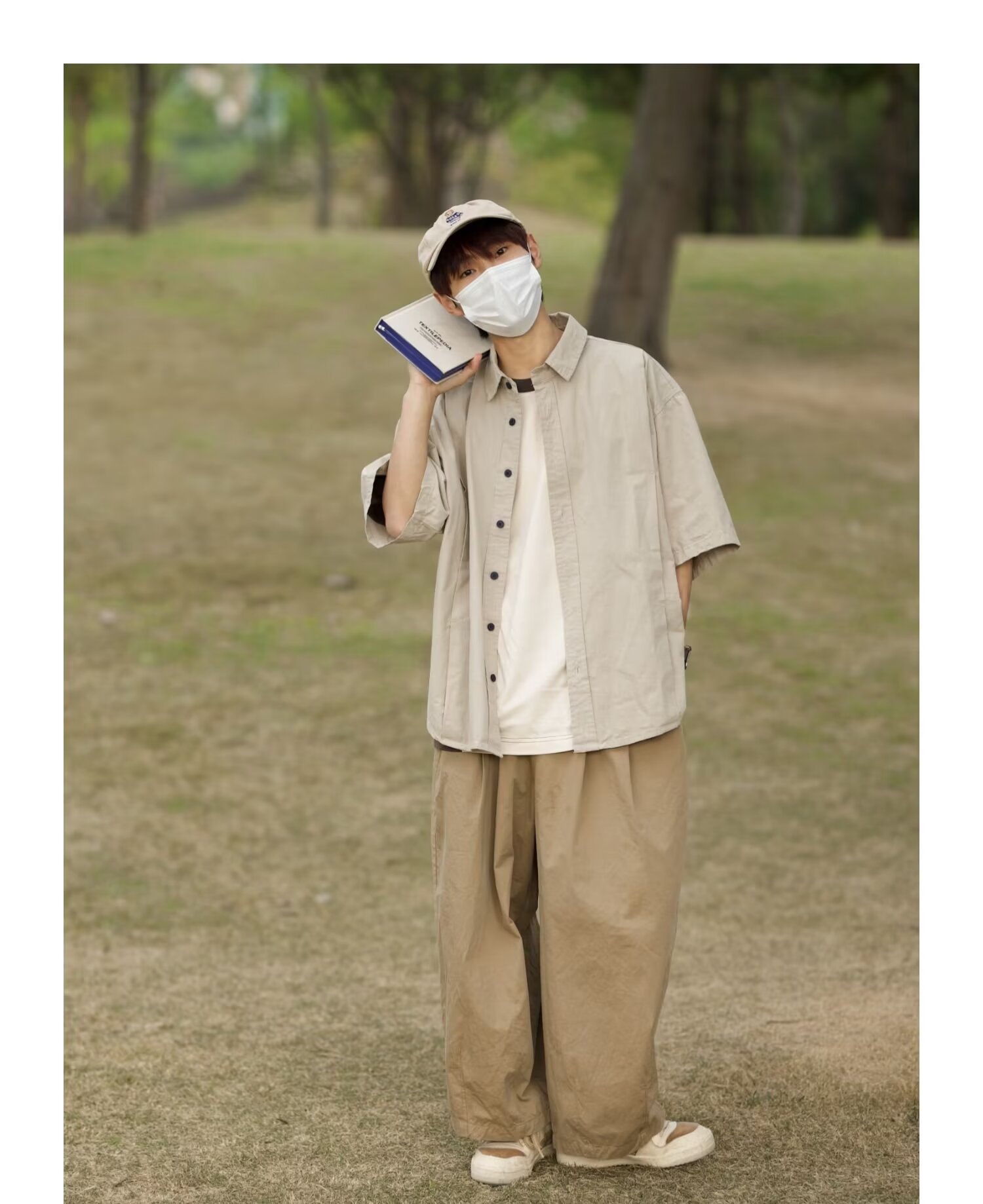 세트 여름 새로운 스타일 작업복 멀티 포켓 캐주얼 느슨한 남성과 여성의 야외 산 반바지 셔츠 조합 세트 트렌디스토어 가기