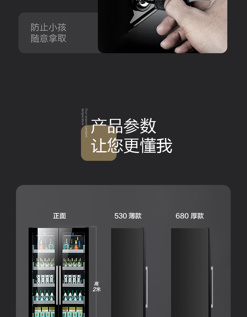 • 이중 온도 레드 와인 시가 블랙 깊이 680mm