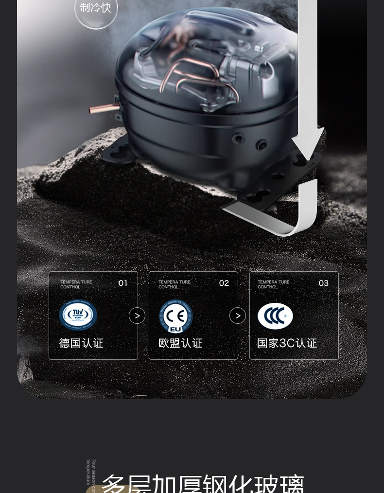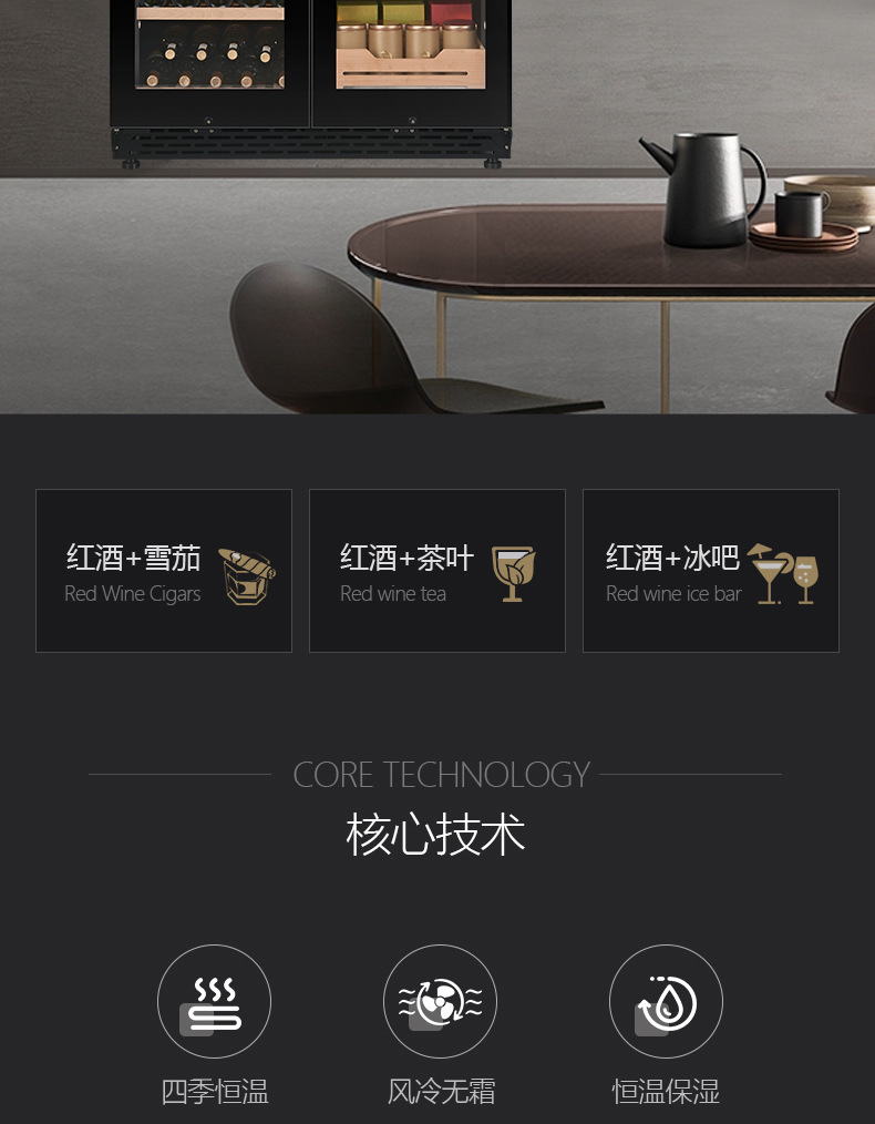 • 이중 온도 레드 와인 아이스 바 블랙 깊이 680mm