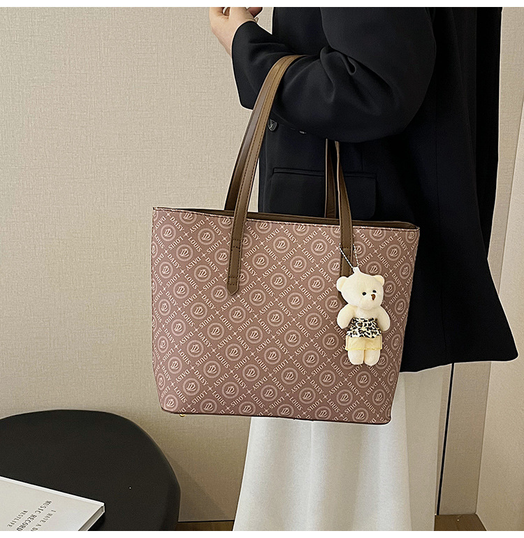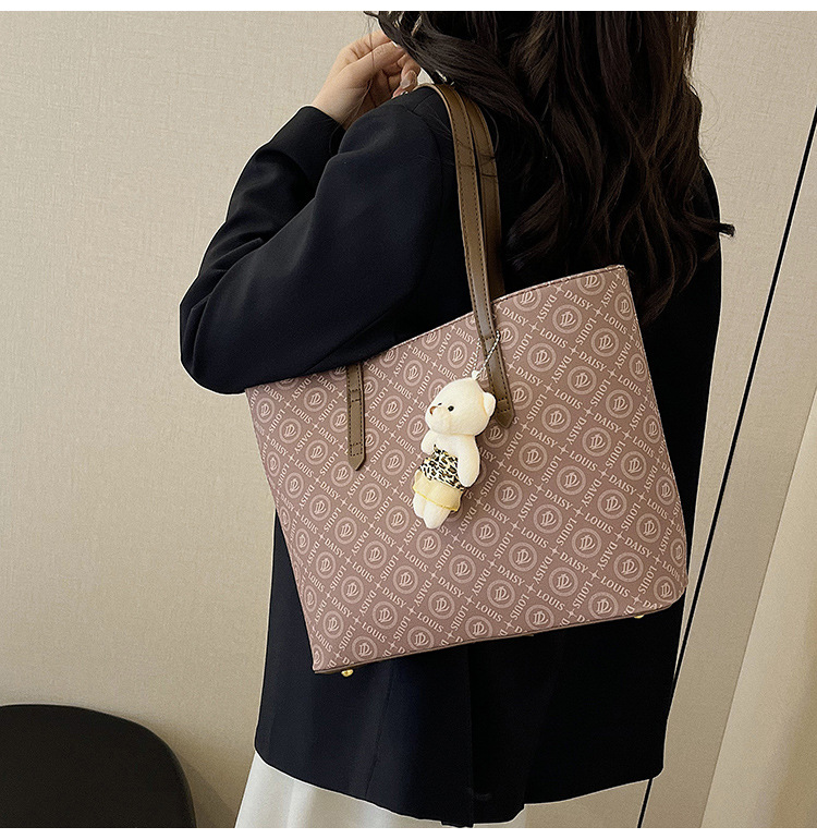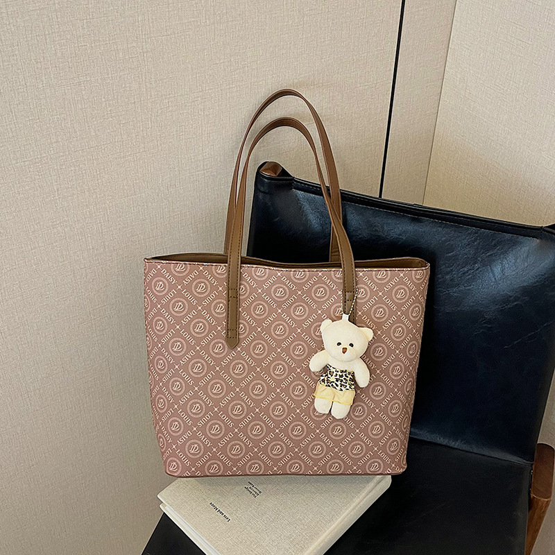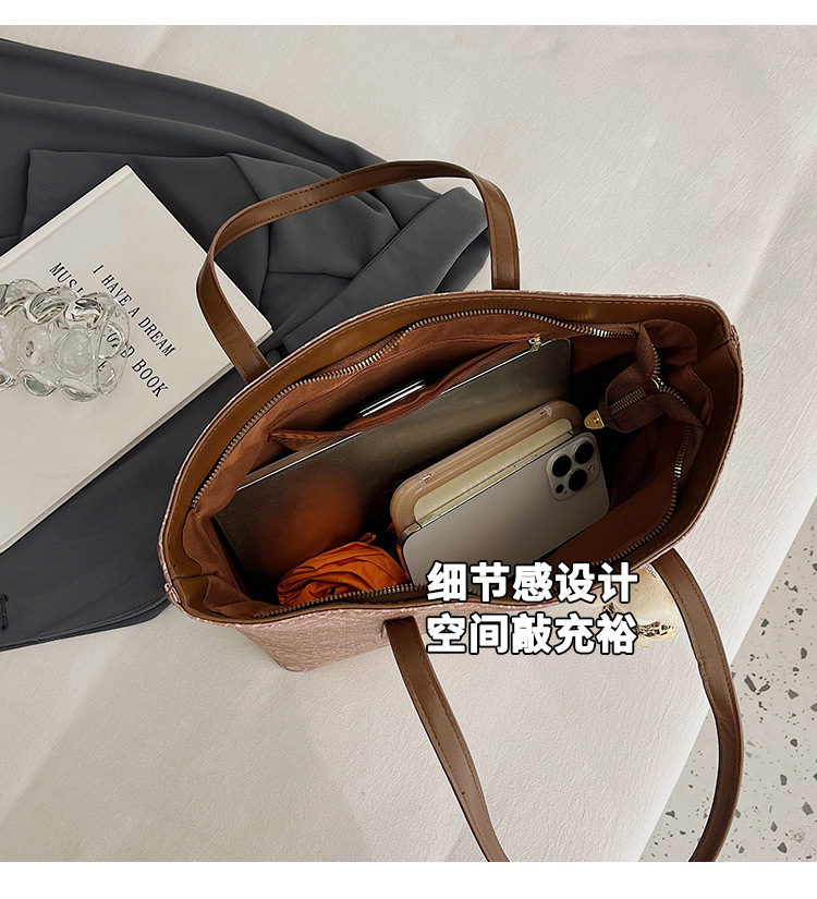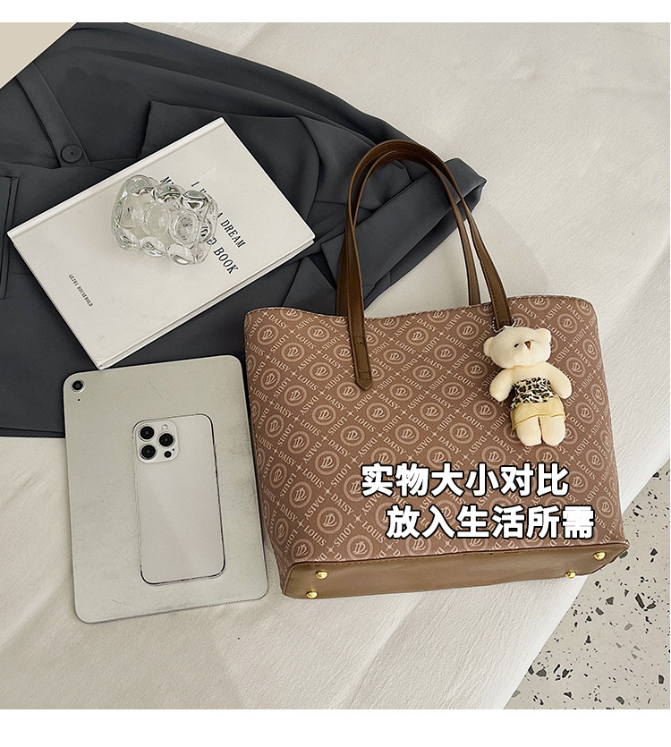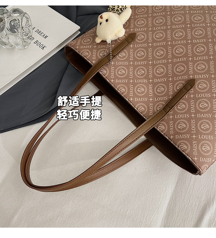 2025 새로운 크로스 보더 가방 여성 간단한 패션 복고풍 대용량 편지 인쇄 휴대용 어깨 가방 토트 백스토어 가기