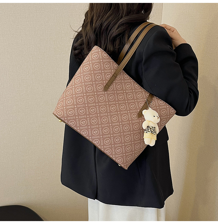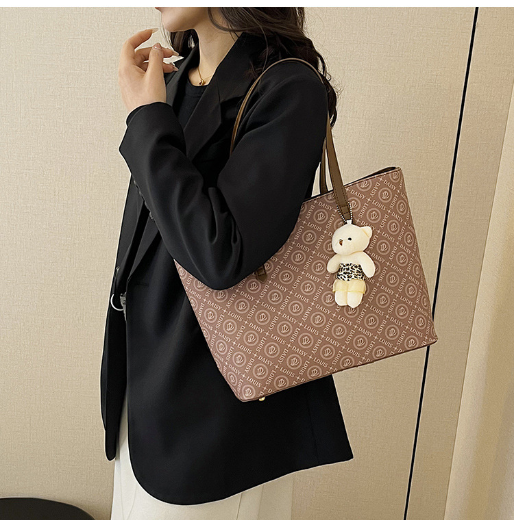 2025 새로운 크로스 보더 가방 여성 간단한 패션 복고풍 대용량 편지 인쇄 휴대용 어깨 가방 토트 백