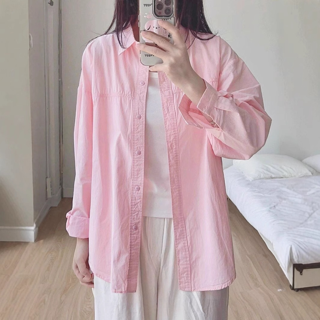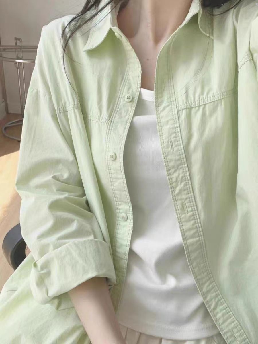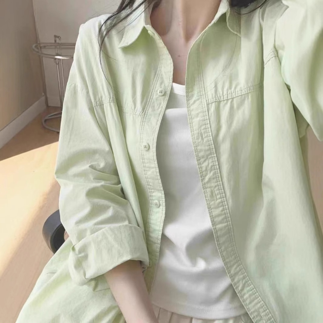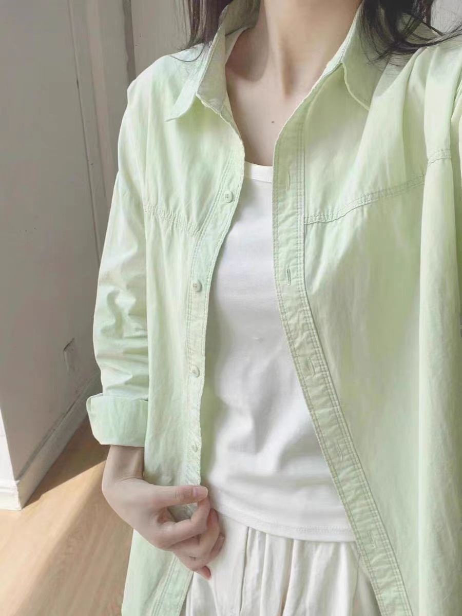 2025 새로운 도파민 우유 황화 셔츠 여성 여름 쌓인 느슨한 셔츠 코트 외부 착용 태양 보호