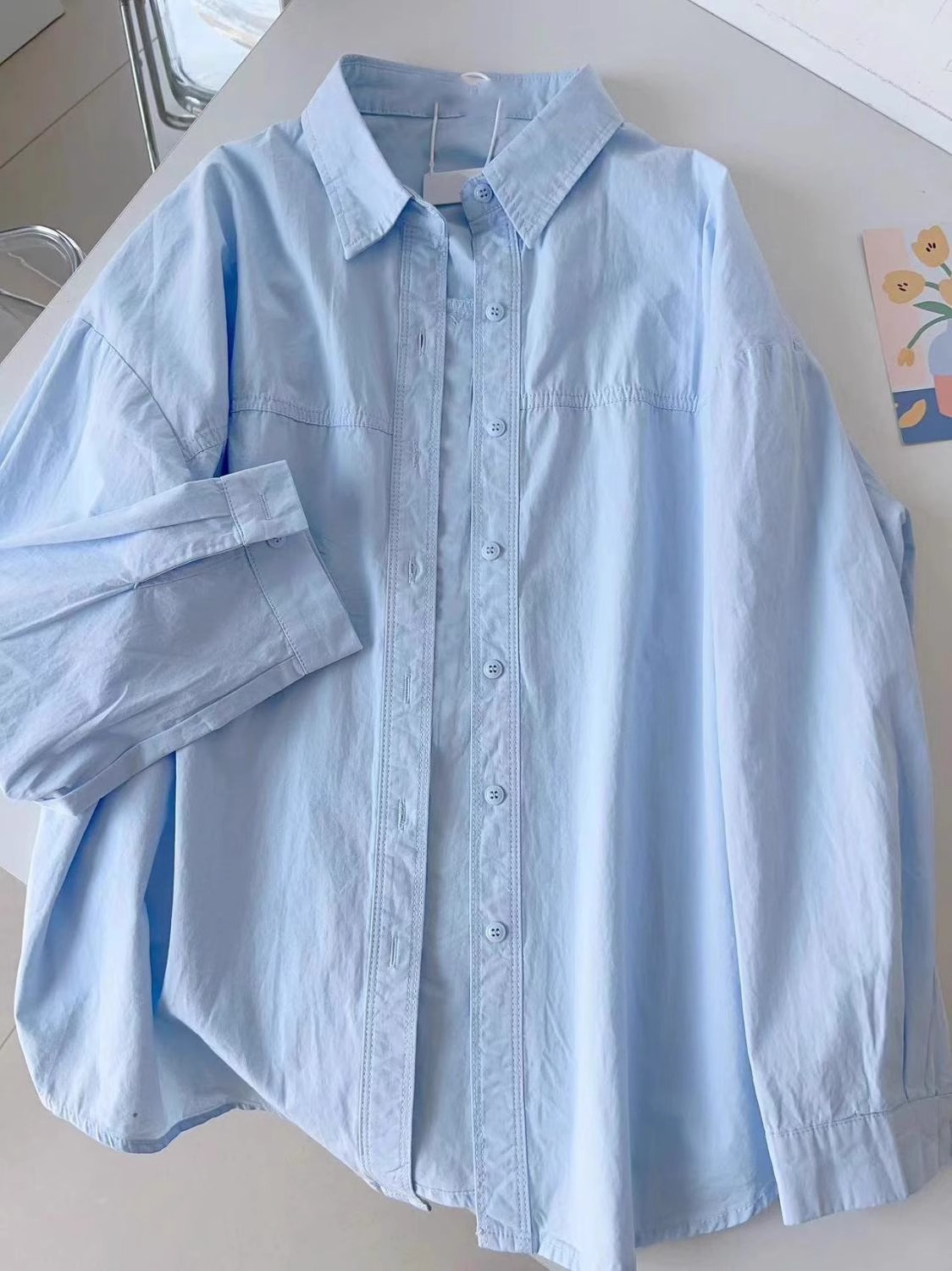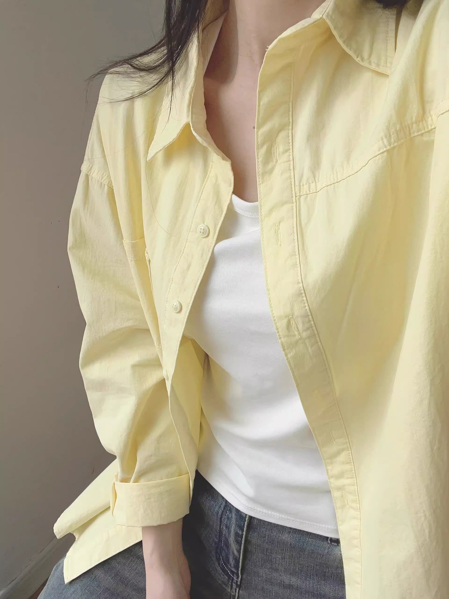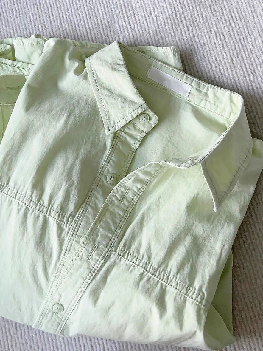 2025 새로운 도파민 우유 황화 셔츠 여성 여름 쌓인 느슨한 셔츠 코트 외부 착용 태양 보호