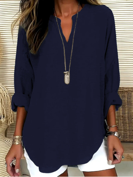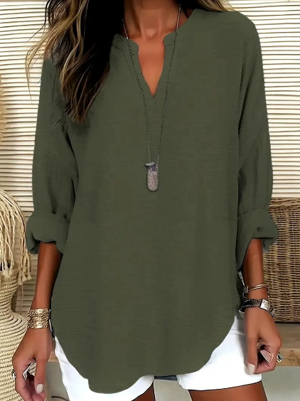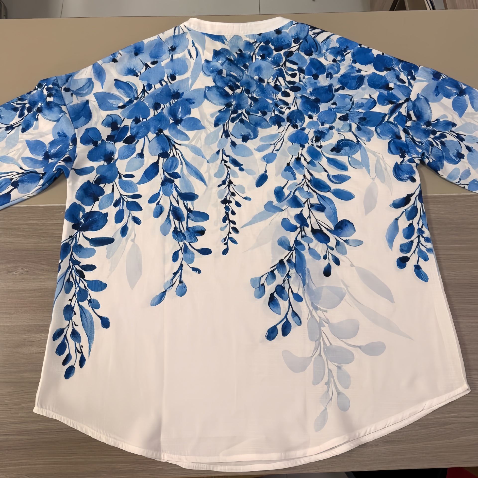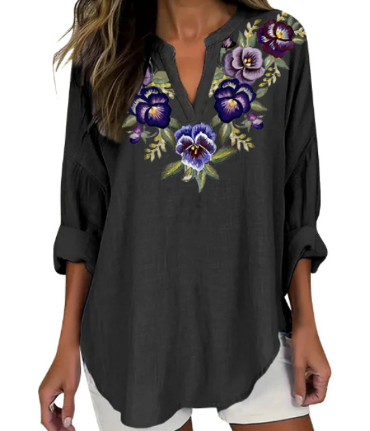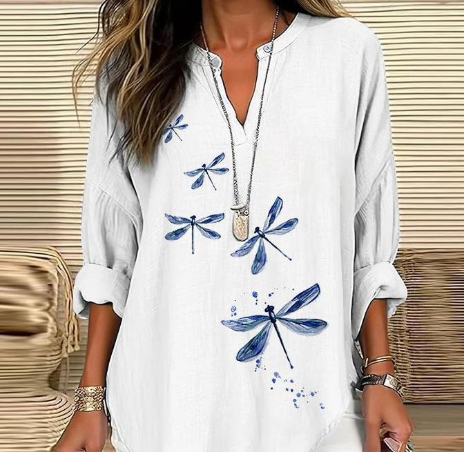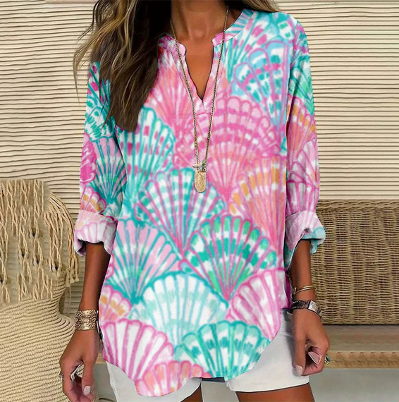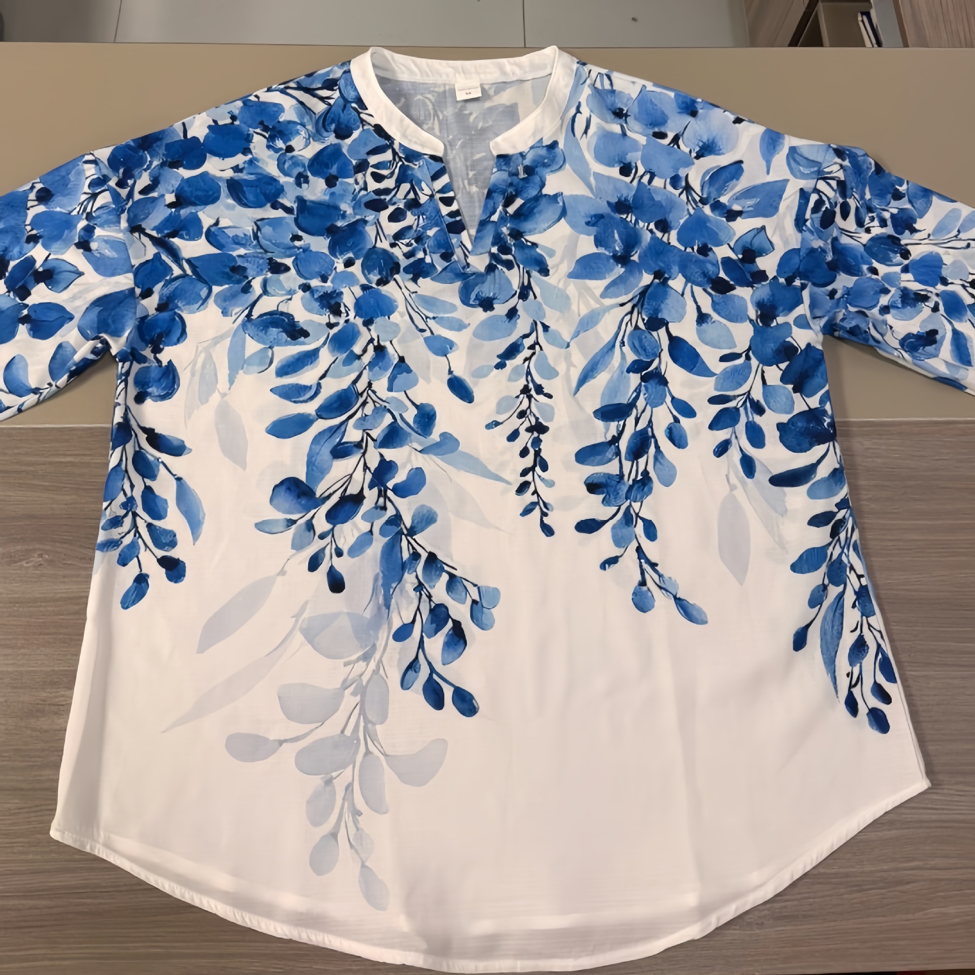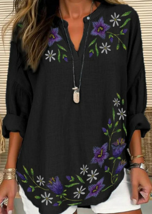 독립 스테이션 플러스 사이즈 여성 여름 작은 v 넥 긴팔 독립 기념일 꽃 무늬 심플 캐주얼 기질 티셔츠 긴팔스토어 가기
