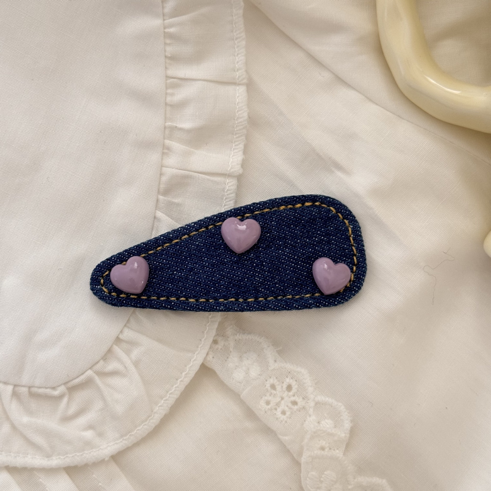 한국 데님 헤어 액세서리 머리핀 2025 새로운 이마 앞머리 클립 신선한 여성 사이드 머리카락 bb 클립 러브 머리핀스토어 가기