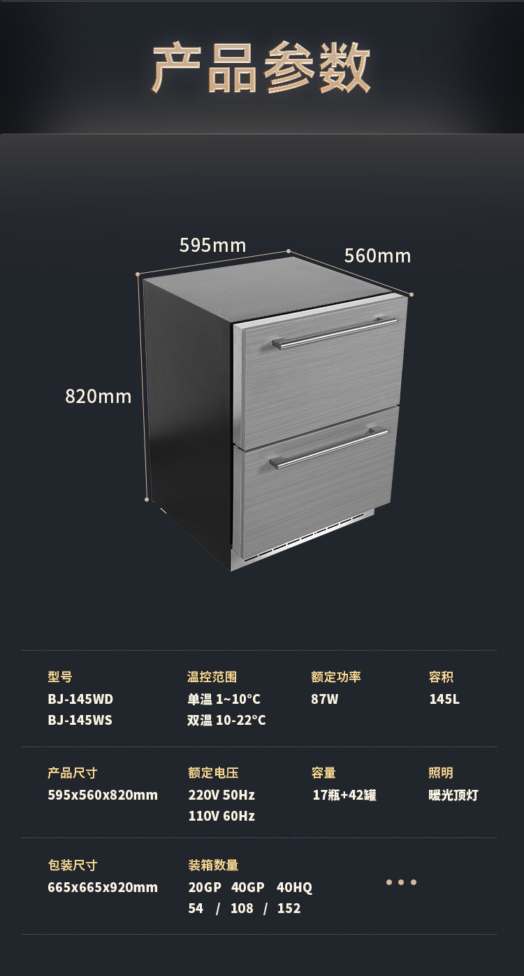 항온 레드 와인 캐비닛 145L 스테인레스 스틸 서랍 형 압축기 냉동 공장 도매 국경 간 항온 와인 캐비닛스토어 가기