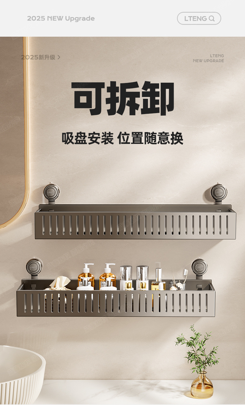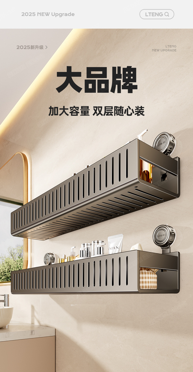 강력한 하중지지 흡입 컵 화장실 보관 랙 펀치없는 욕실 화장실 세면대 벽걸이 스토리지 랙