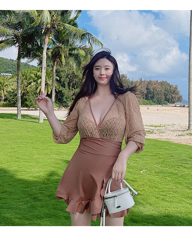 수영복 여성 온천 2022 년 신간 스타일 보수 배꼽 커버 슬리밍 여성 섹시한 플러스 사이즈 수영복