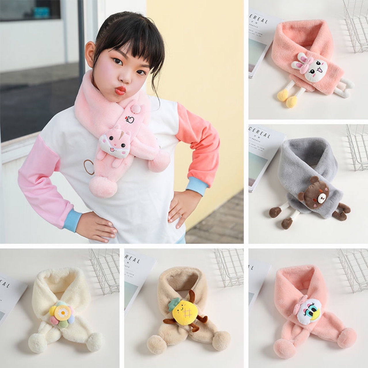 아기 스카프 따뜻한 만화 플러시 남성과 여성 아기 스카프 가을, 겨울 따뜻한 다목적 어린이 크로스 스카프 스카프스토어 가기