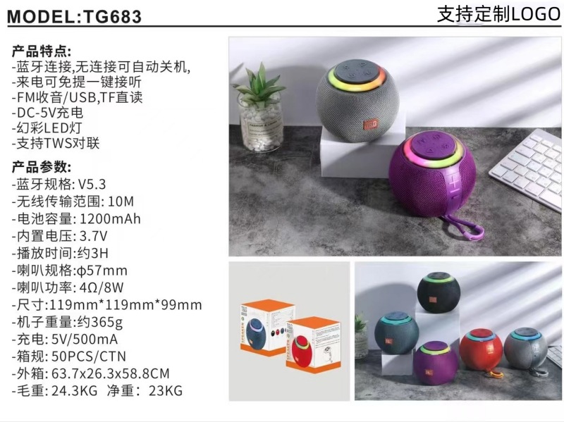 새로운 TG683 휴대용 블루투스 스피커 홈 야외 과체중 서브 우퍼 높은 음질 긴 내구성 오디오