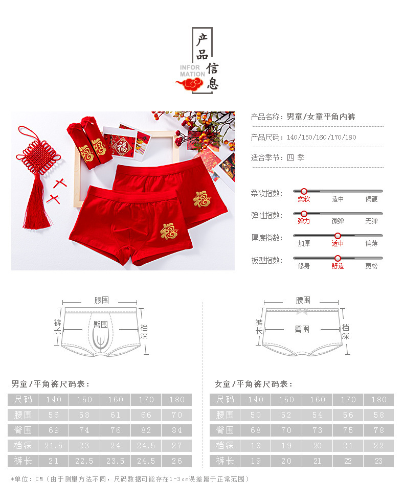 소년 속옷 순면 아동 속옷 빅 레드 아동복 사각 팬티 중대형 아동 청소년 소녀 사각 팬티