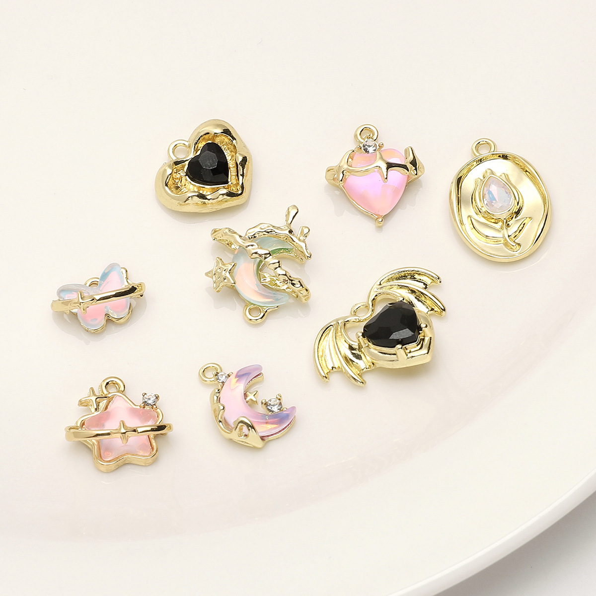 합금 유리 펜던트 쥬얼리 액세서리 나비 사랑 날개 달 펜던트 DIY 수제 보석 재료 패키지