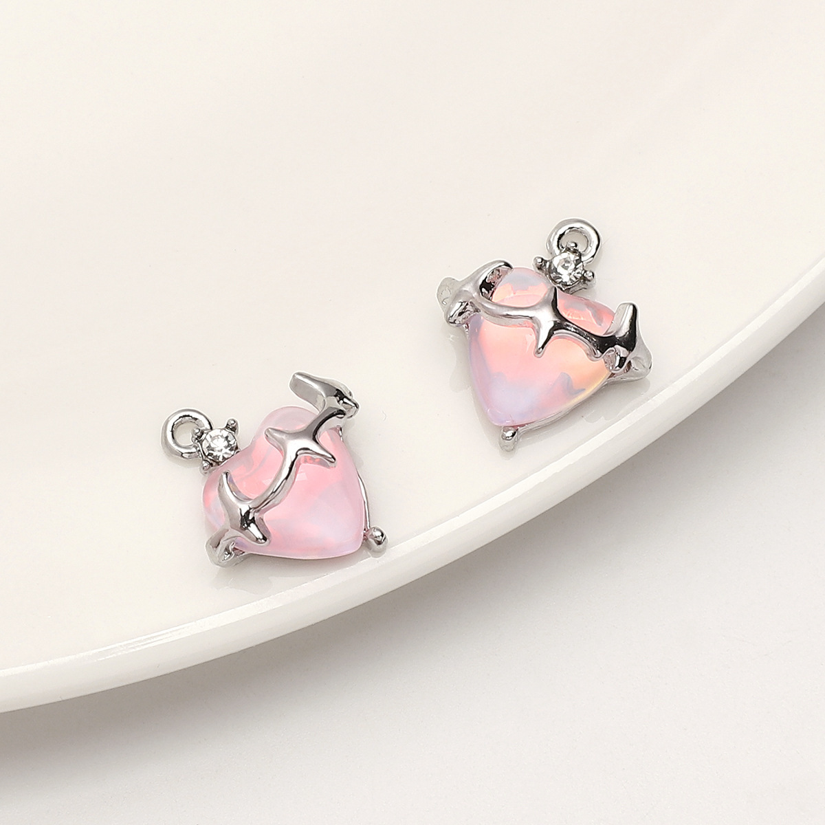 • #41가지 스타일 러브 펜던트 16x14mm, 조리개 약 1mm, 화이트 K 컬러 핑크 유리