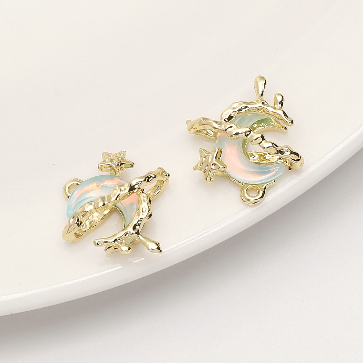 • #27개 모델의 별과 달 펜던트 17x18mm, 조리개 약 1mm, 황금색 흰색 유리