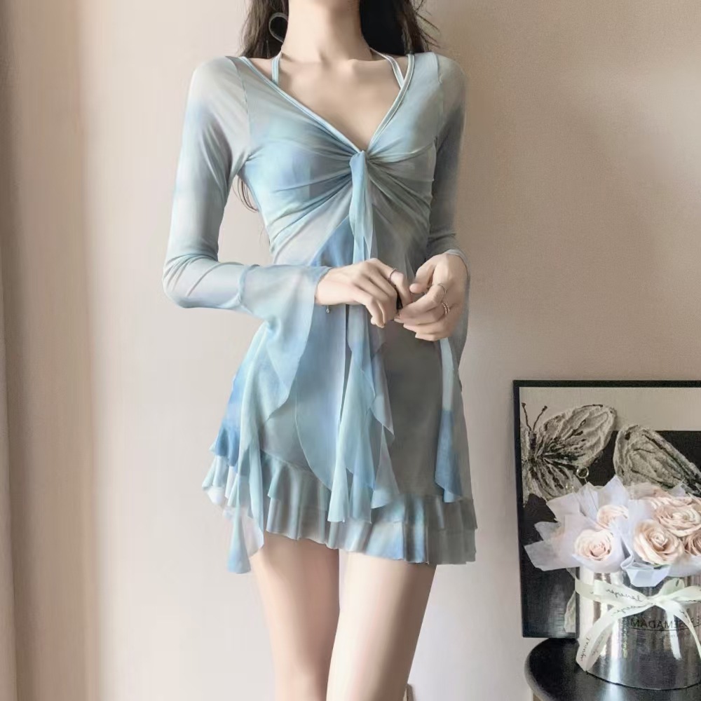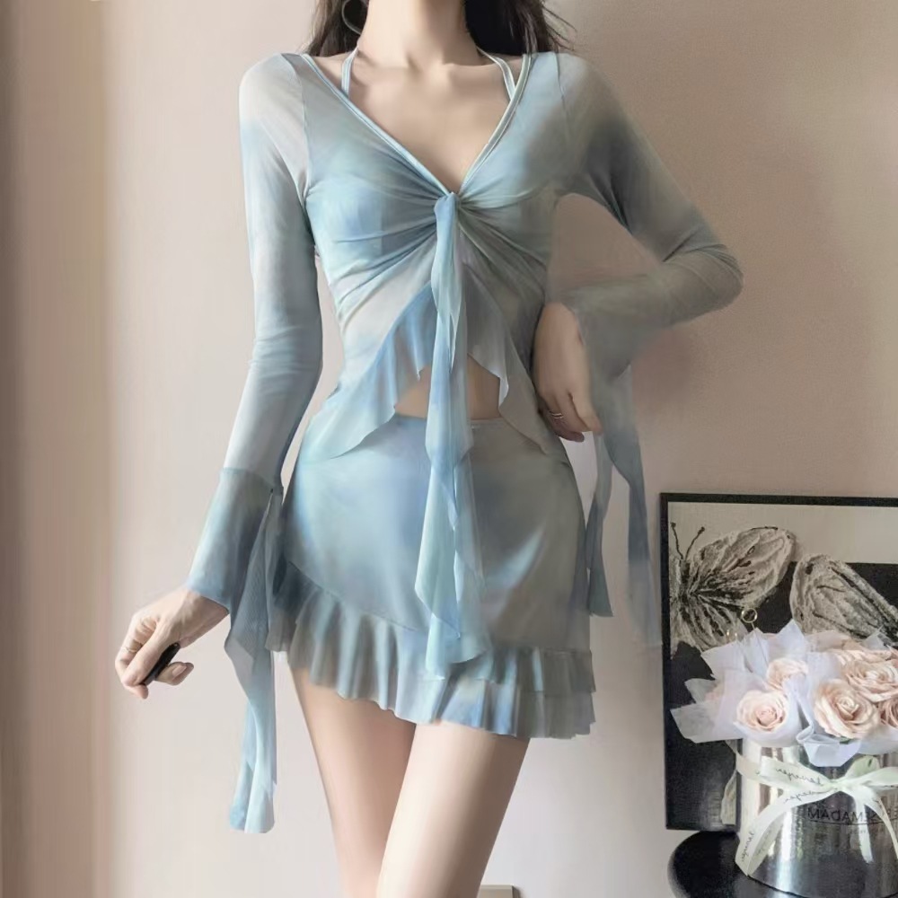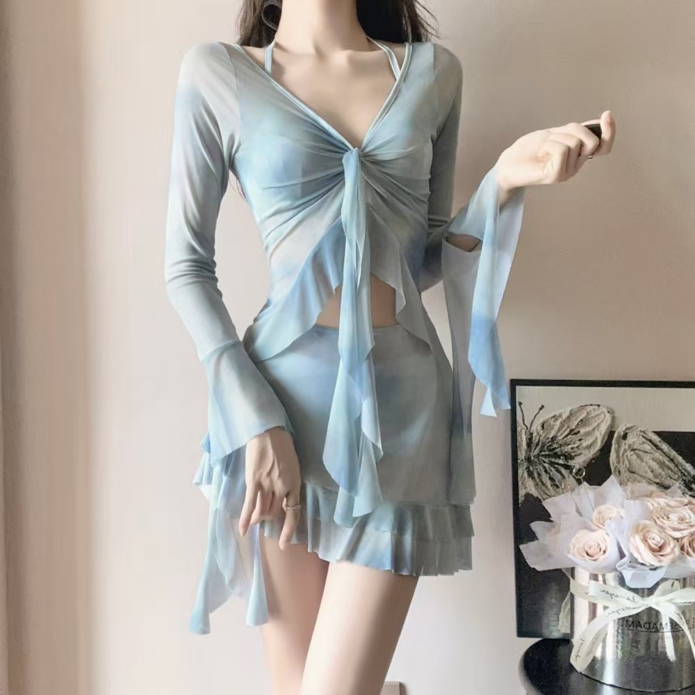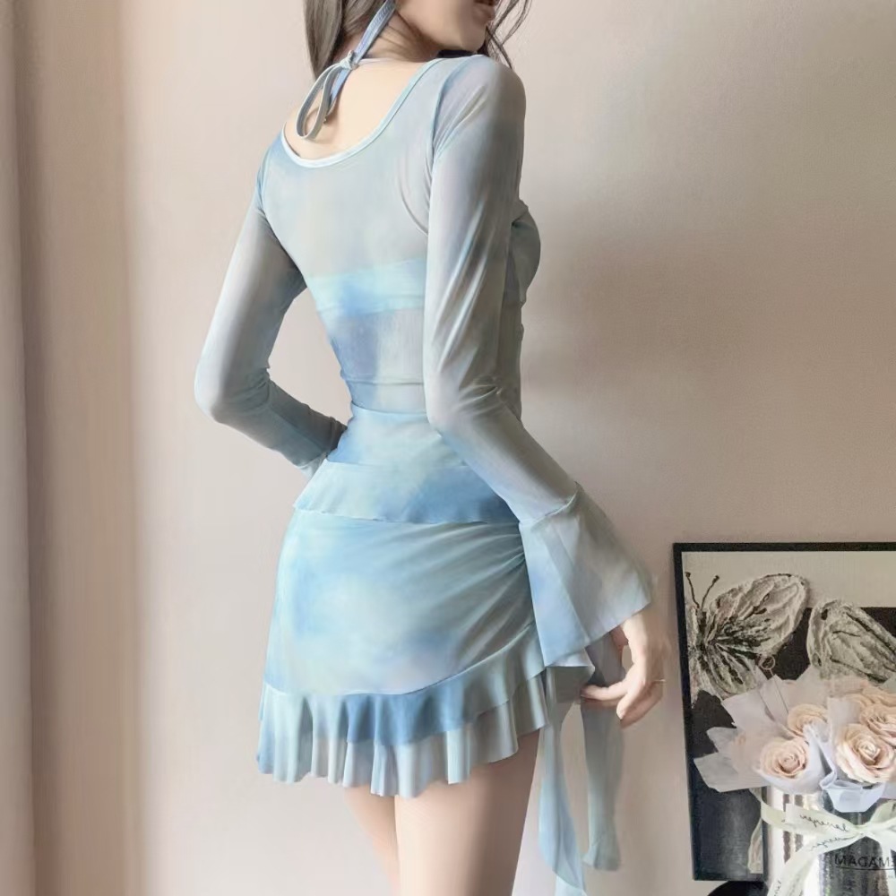 피난 공주 수영복 여성 2025 새로운 핫 스타일 비키니 4 피스 세트 섹시한 긴팔 블라우스 아름다운 온천스토어 가기