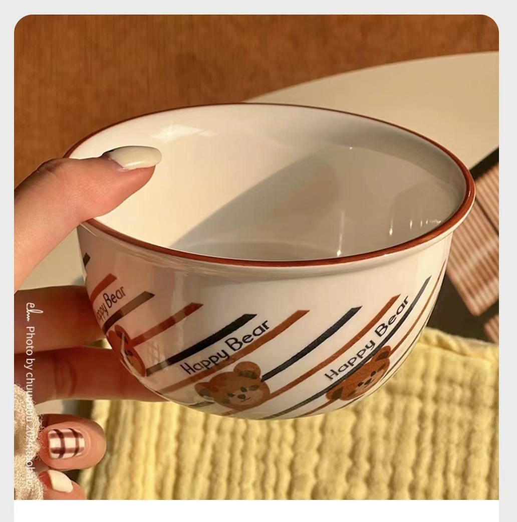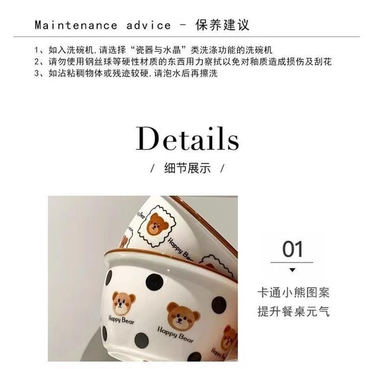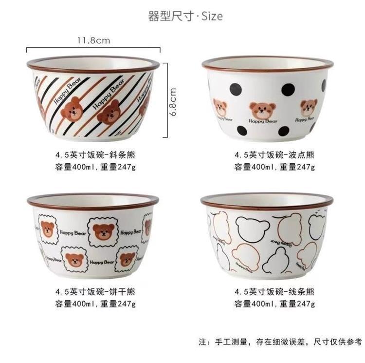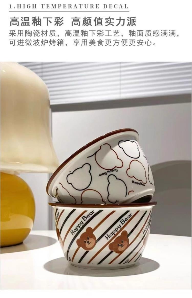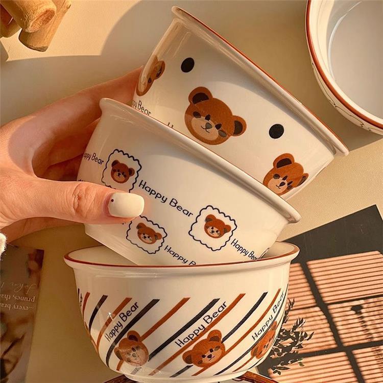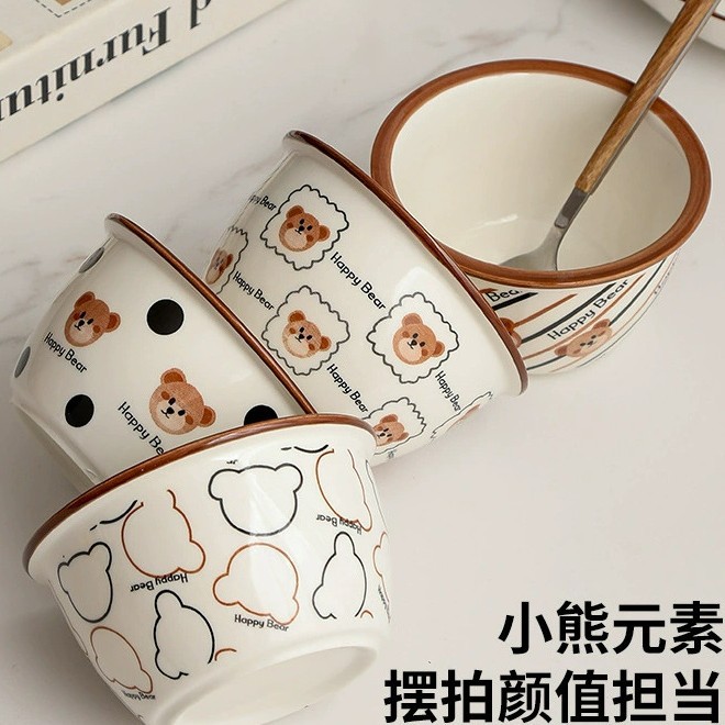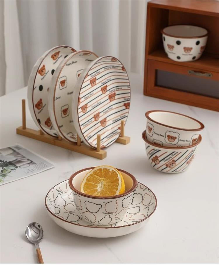 고급스러운 벨 베어 세라믹 식기 가정용 만화 귀여운 밥 그릇 그릇과 접시 세트 접시 접시 수프 그릇 제조 업체 도매스토어 가기