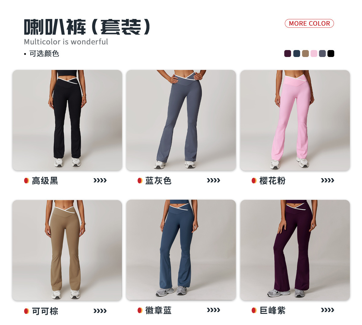 대조적 인 색상 섹시한 타이트 피트니스 의류 세트 V-Neck 스포츠 조끼 빠른 건조 높은 허리 크로스 엉덩이 리프팅 요가 플래 드 바지스토어 가기