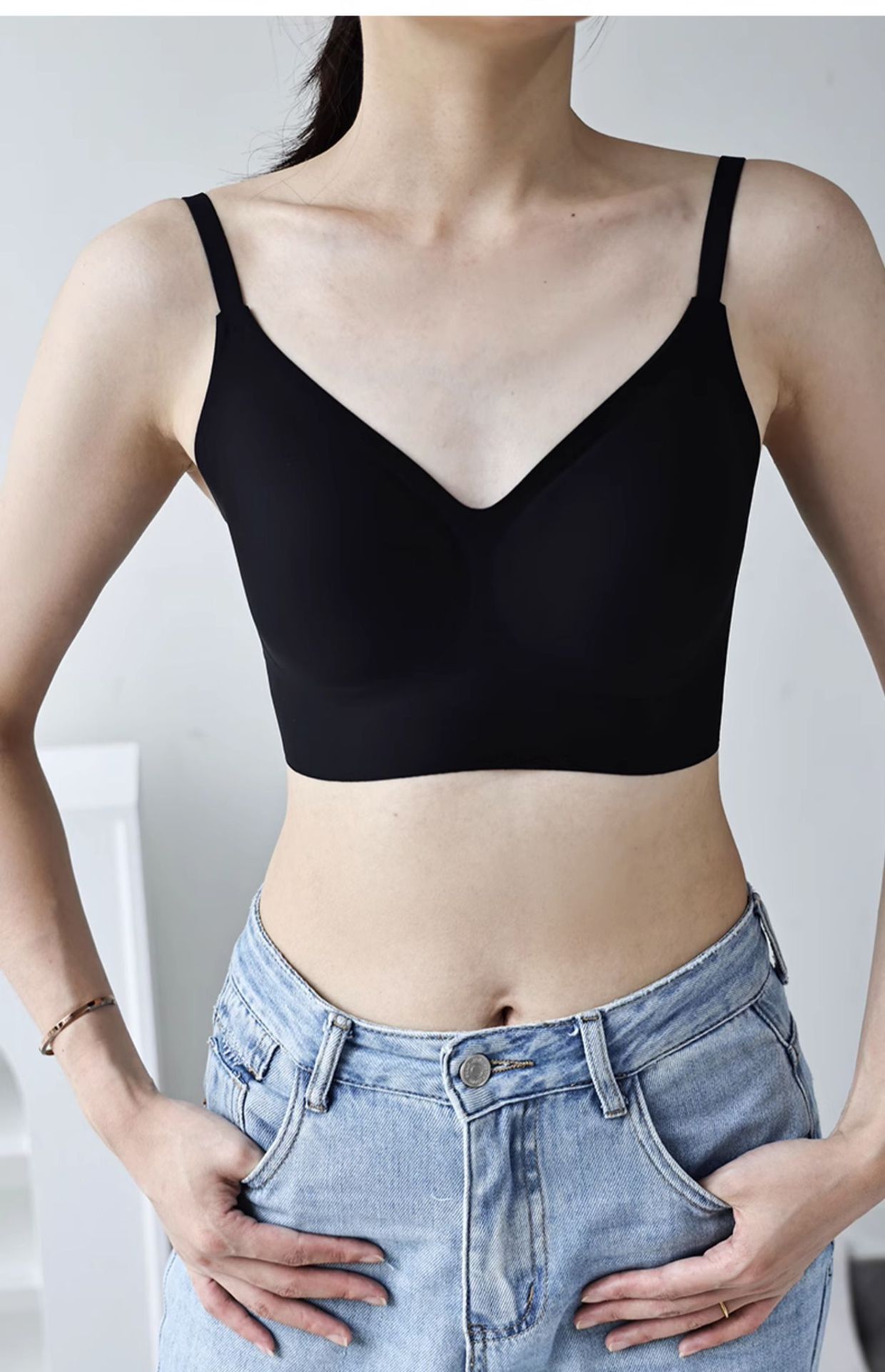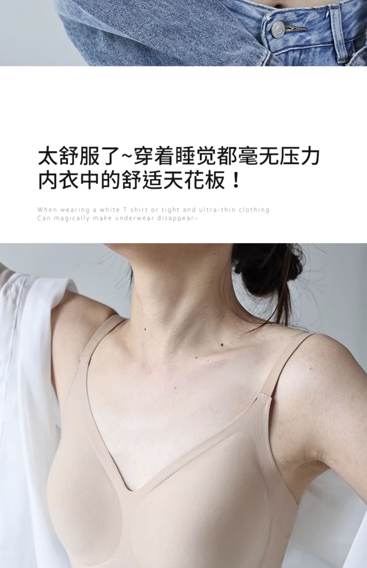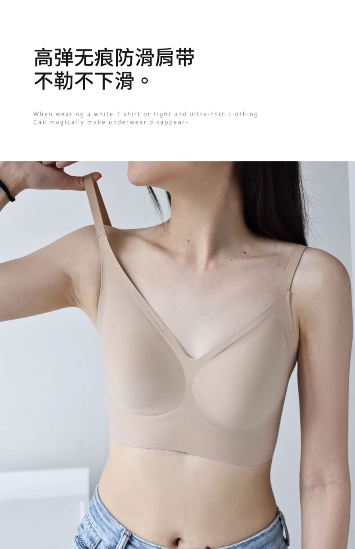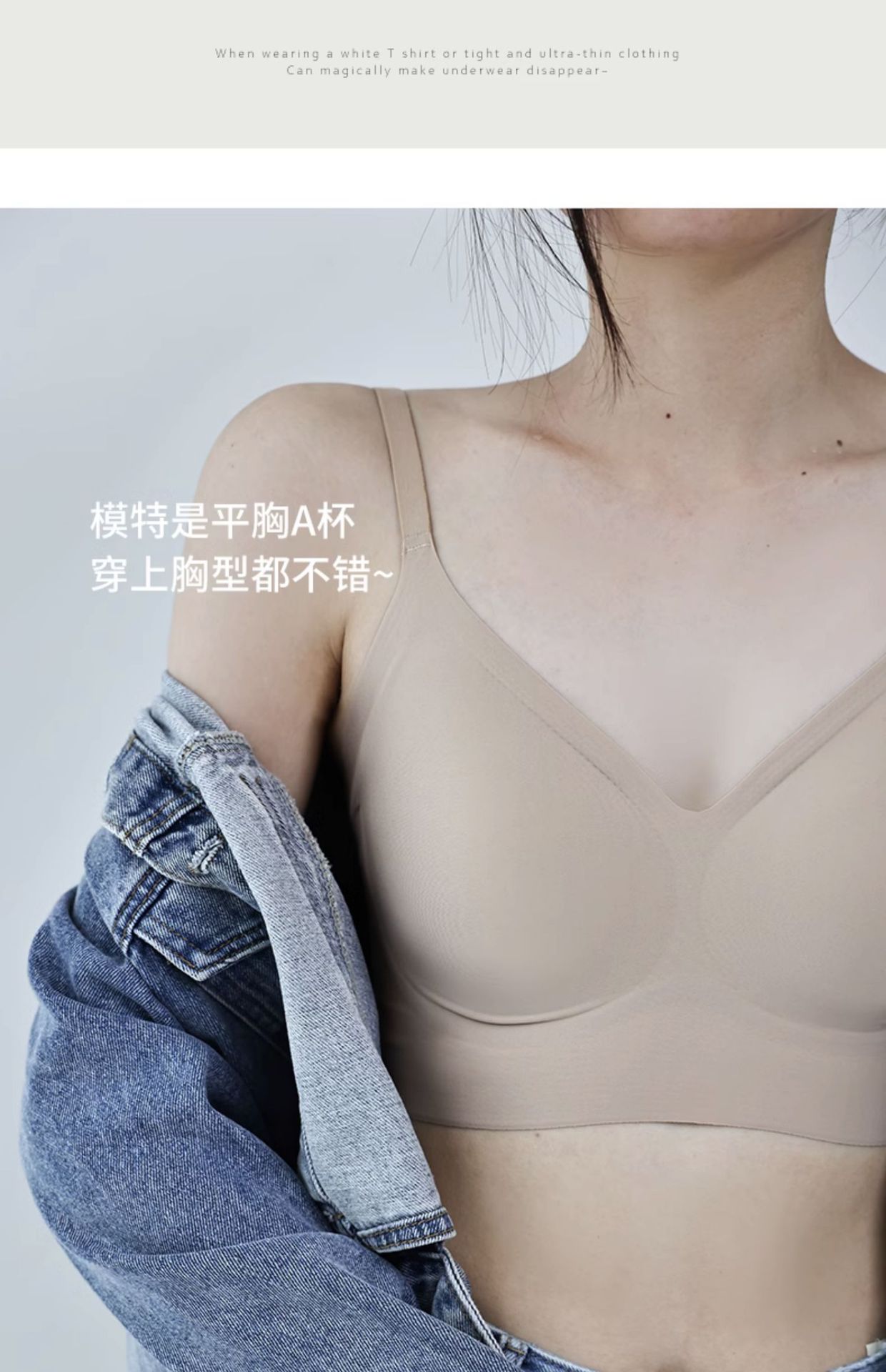 원래 액체 재단 속옷 여성의 작은 가슴 큰 보이지 않는 피부 색 투과성 및 추적없는 여름 얇은 아름다운 등받이