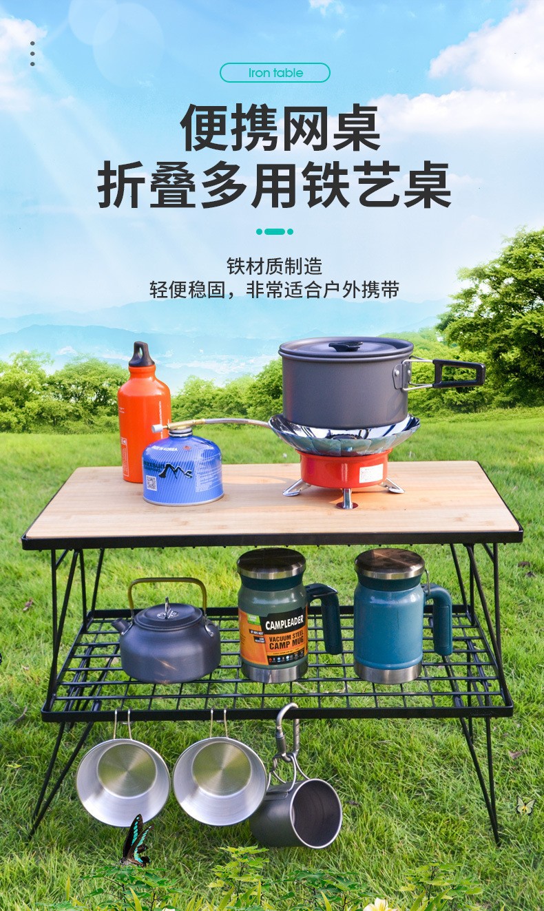 야외 휴대용 철 테이블 배수 랙 그리드 테이블 대나무 보드 테이블 캠핑 자체 운전 피크닉 테이블 바베큐 접는 캠핑스토어 가기