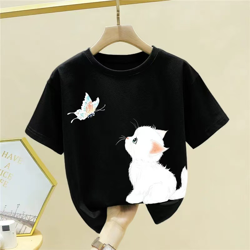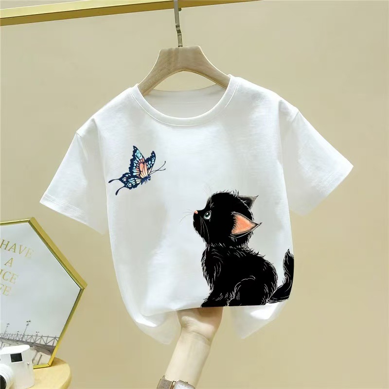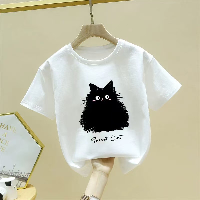 고양이 어린이 반팔 티셔츠 여름 2025 년 새 스타일 소녀 잘 생긴 탑 보이스 반소매 코튼 걸스 여름 원피스스토어 가기