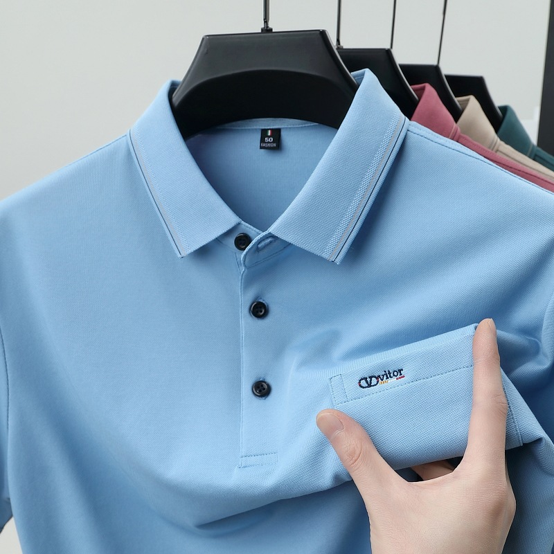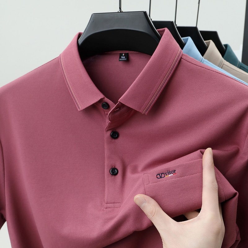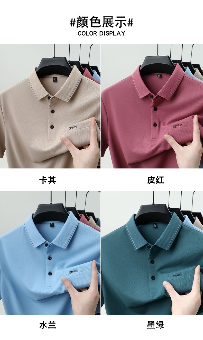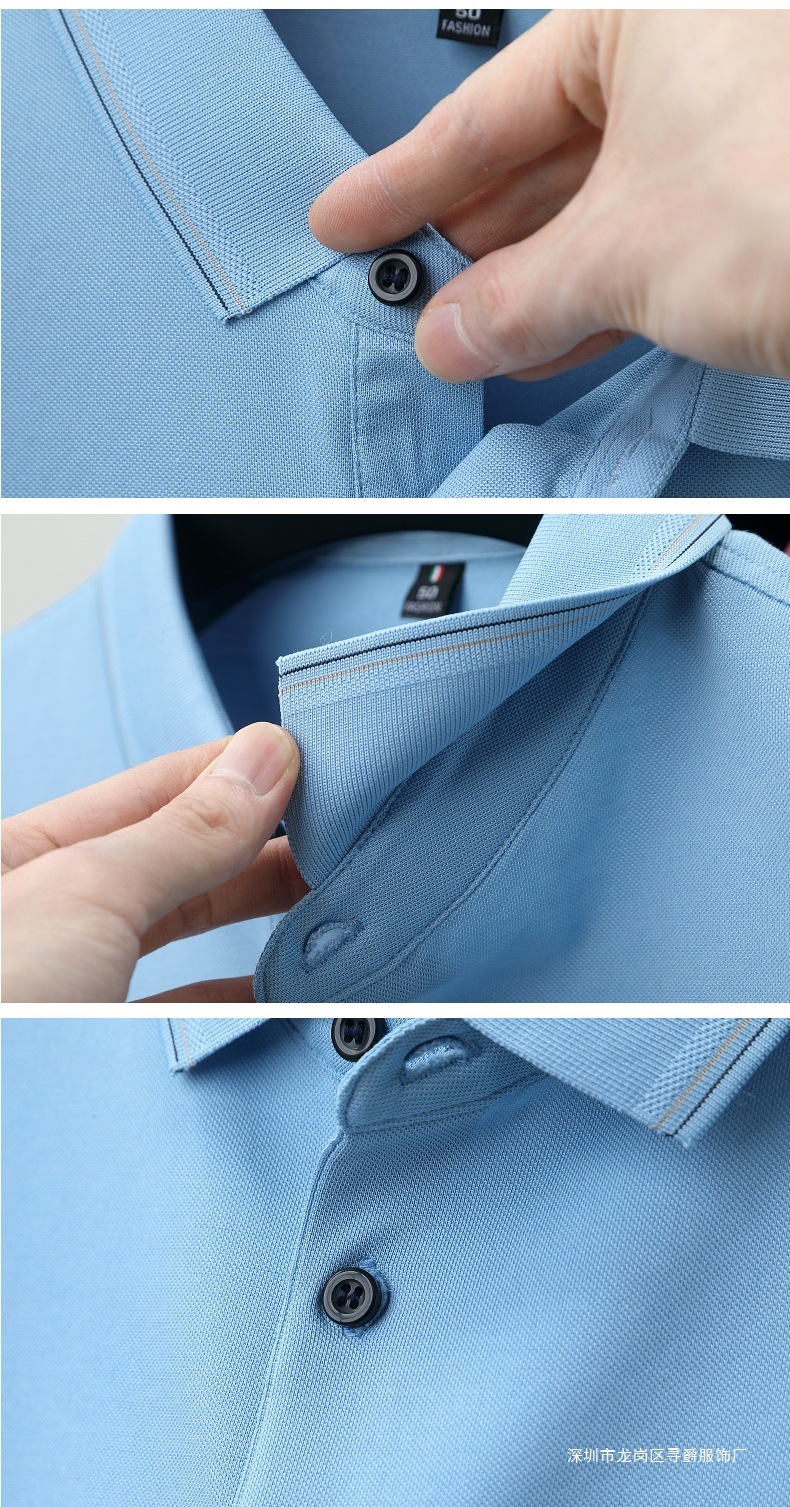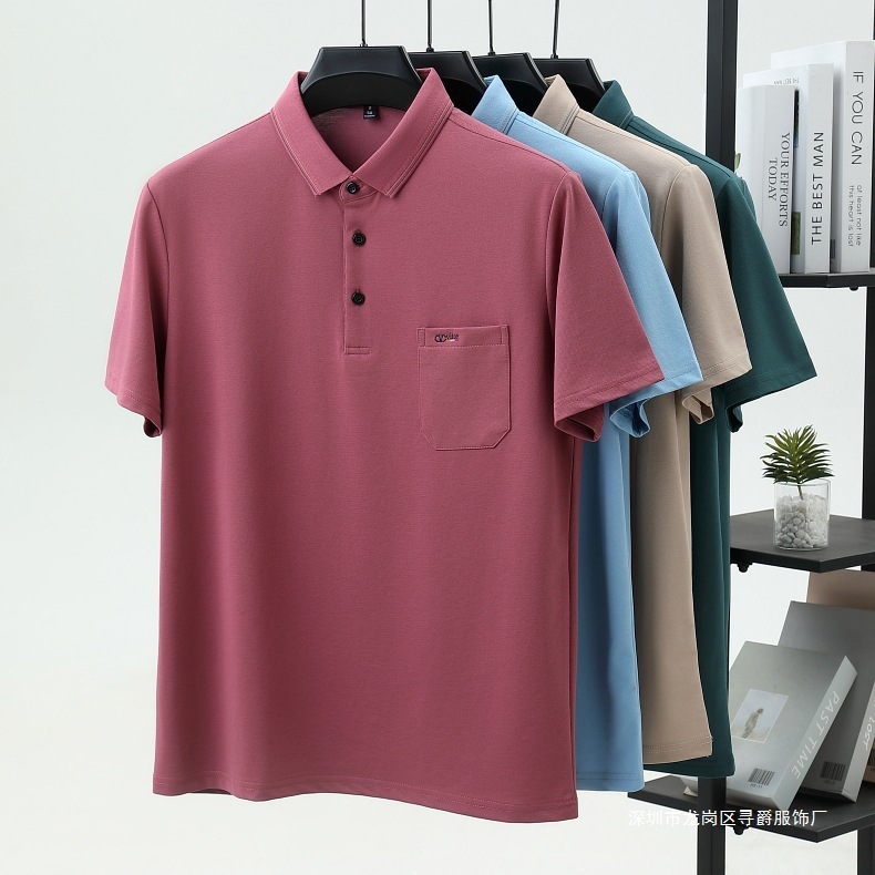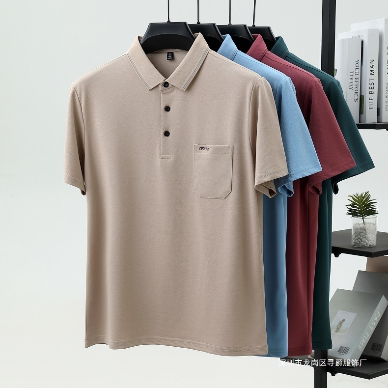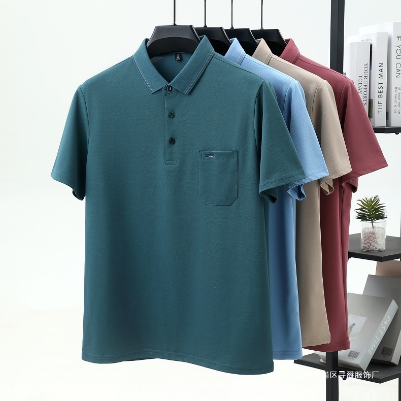 여름 새 스타일 진주면 반팔 티셔츠 남성용 캐주얼 옷깃 반소매 티셔츠 중년 아빠의 얇은 탑