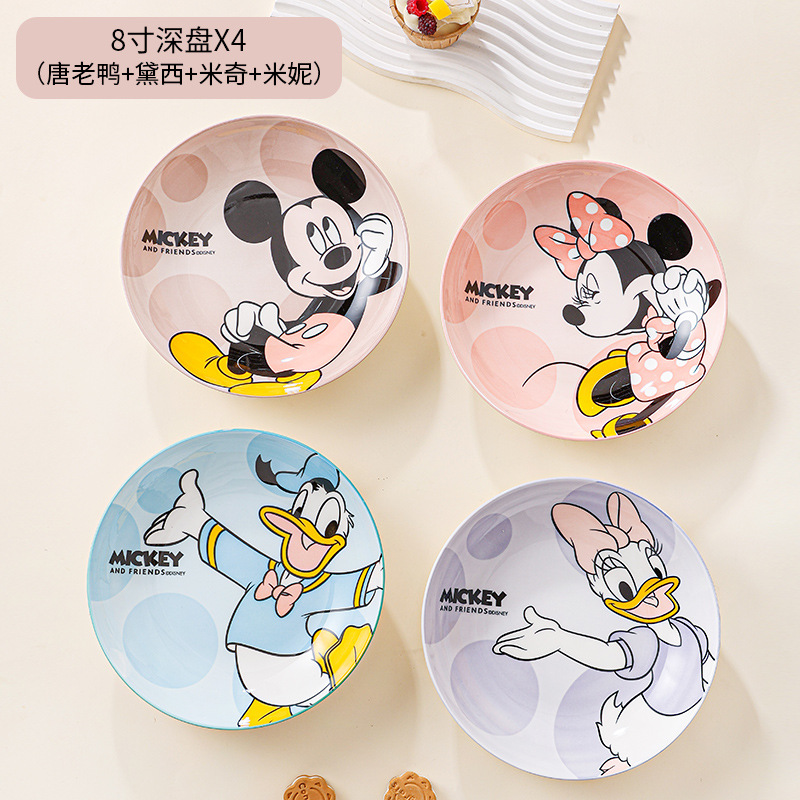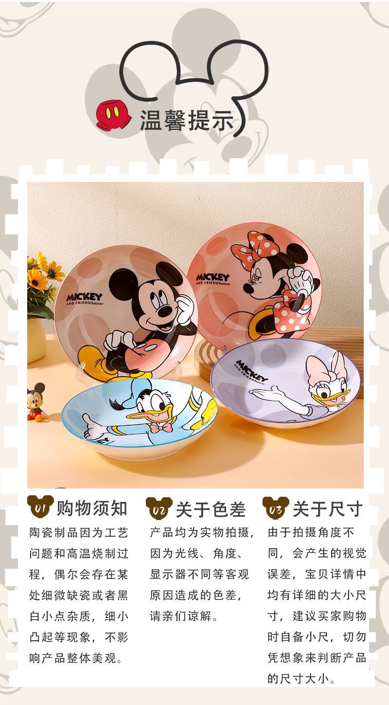 디즈니 세라믹 플레이트 높은 색상 가치 만화 디스크 Leyou 미키 가정용 유약 컬러 플레이트 고온 저항 딥 플레이트스토어 가기