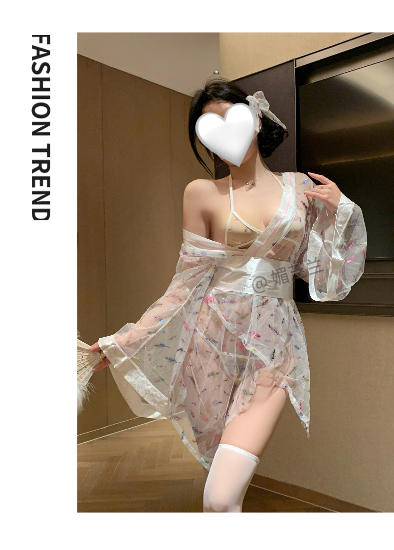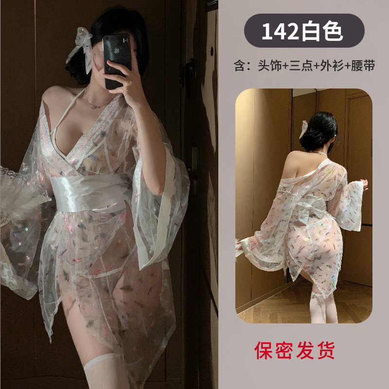 새로운 유럽과 미국의 비키니 3피스 기모노 일본 반짝이는 긴팔 블라우스 섹시한 기모노 3점 유니폼 1개스토어 가기