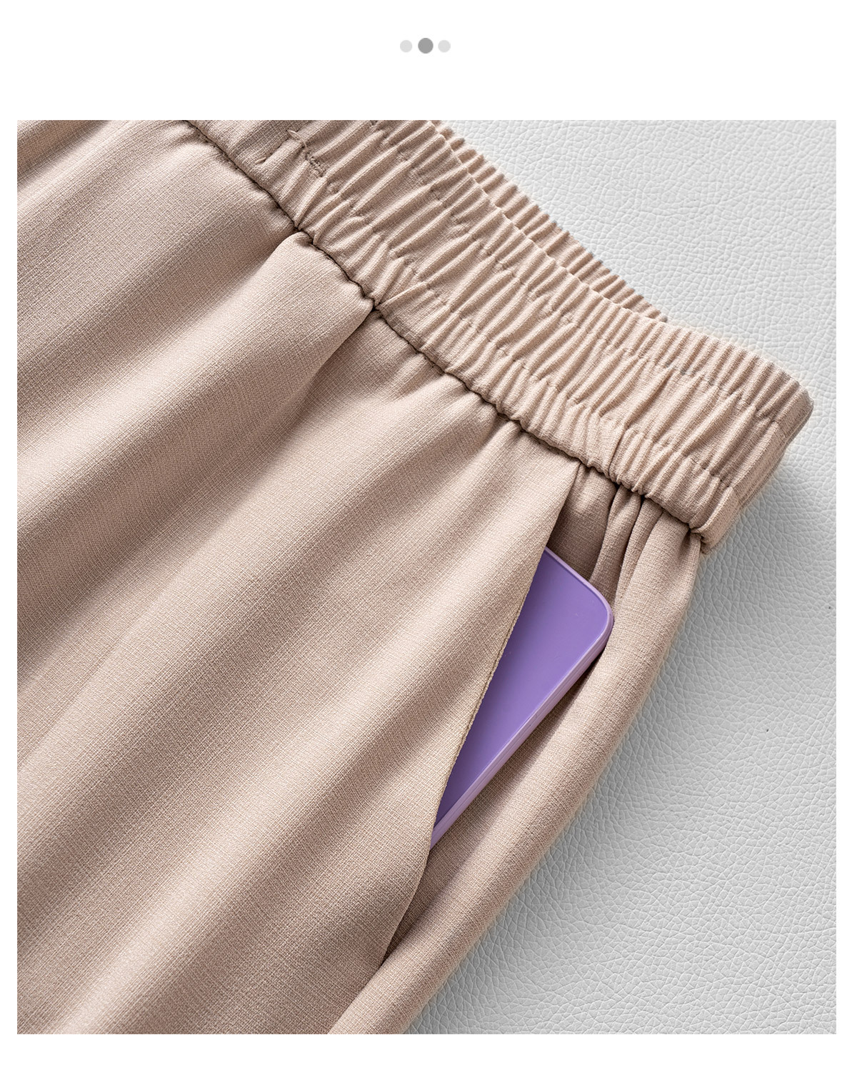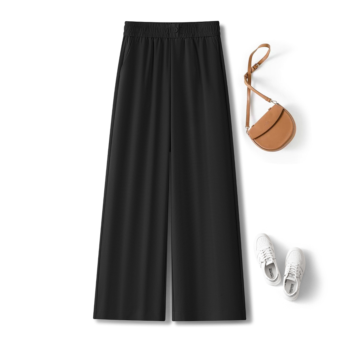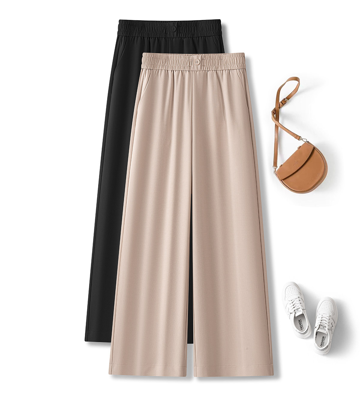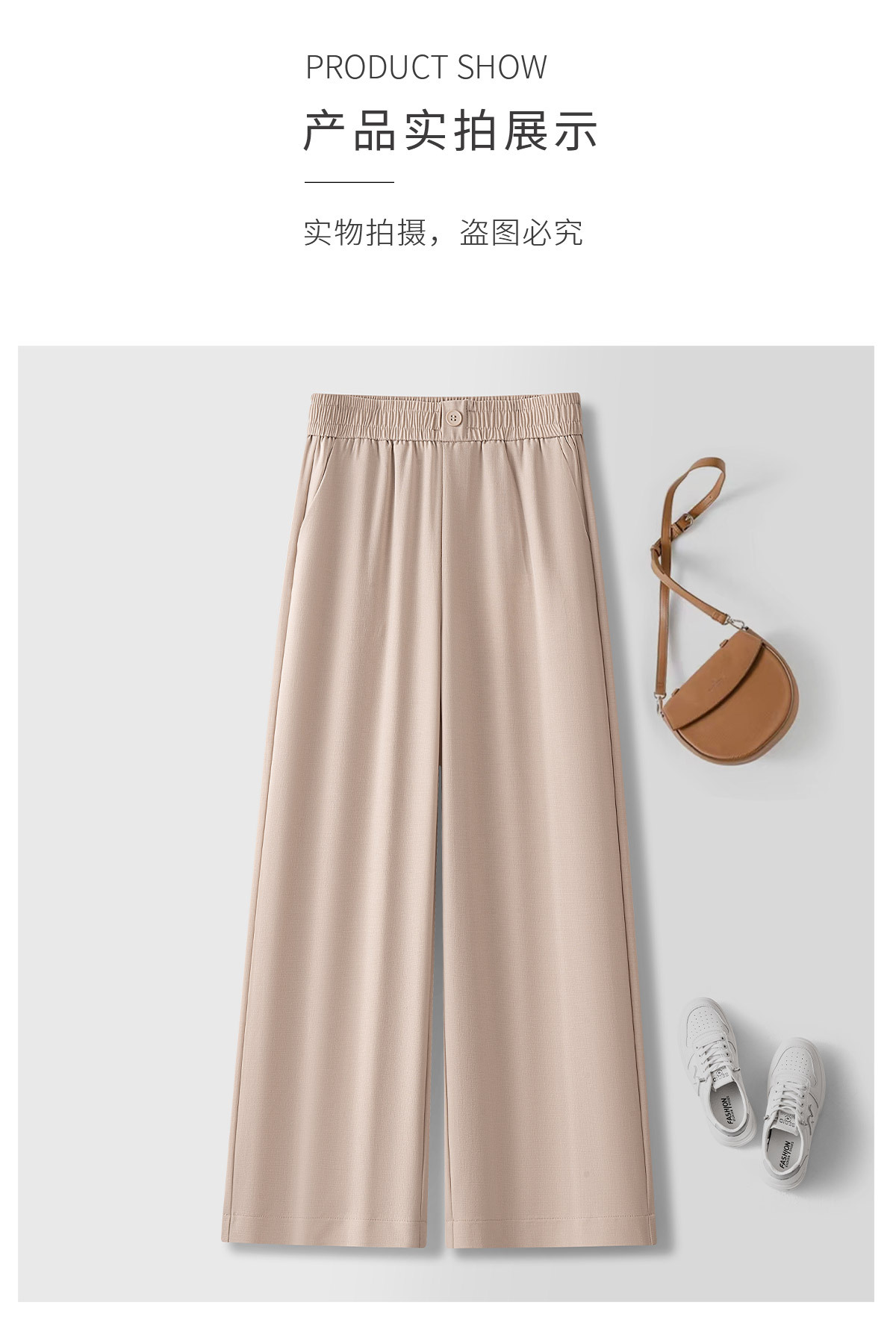 느슨한 허리 넓은 다리 캐주얼 바지 여성의 2025 새로운 여름 얇은 얼음 실크 투약 느슨한 슬리밍 스트레이트 바지스토어 가기