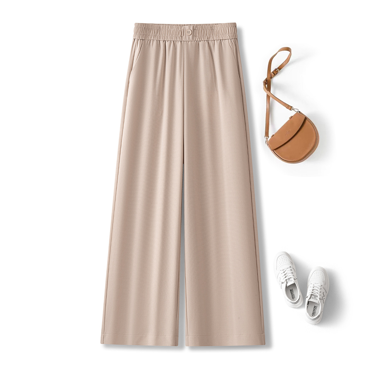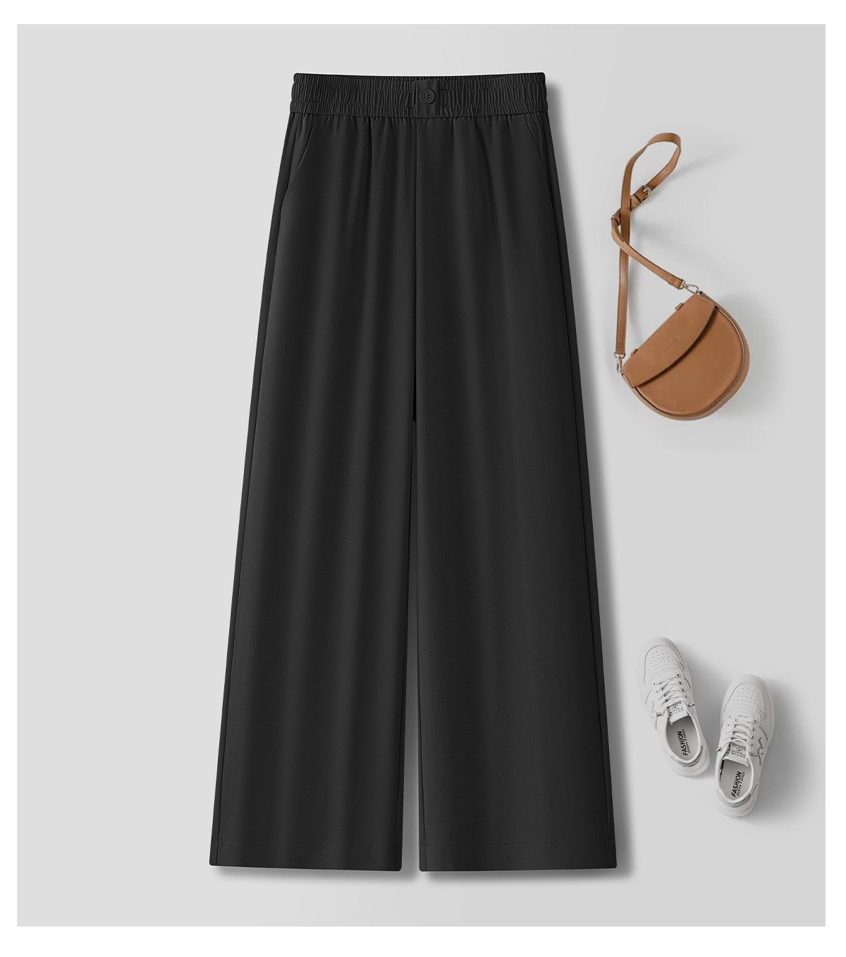 느슨한 허리 넓은 다리 캐주얼 바지 여성의 2025 새로운 여름 얇은 얼음 실크 투약 느슨한 슬리밍 스트레이트 바지