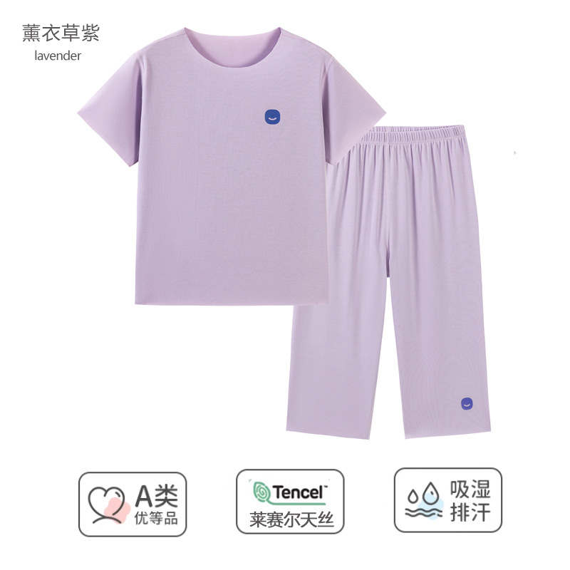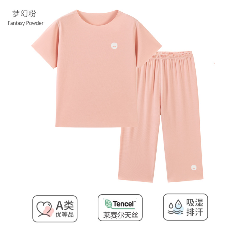 어린이 잠옷 세트 여름 Lanjing Tencel Lyocell 긴팔 인테리어 에어컨 의류 대형 어린이 홈 의류 세트