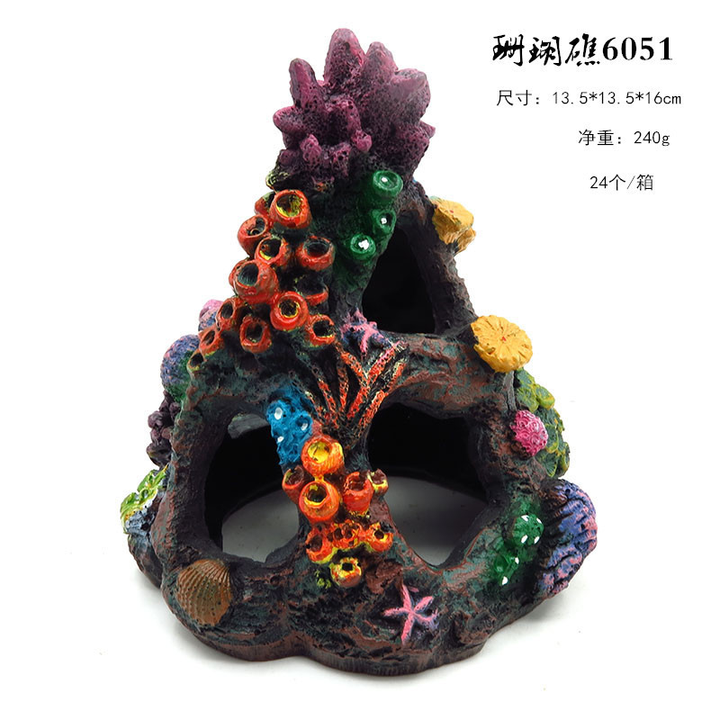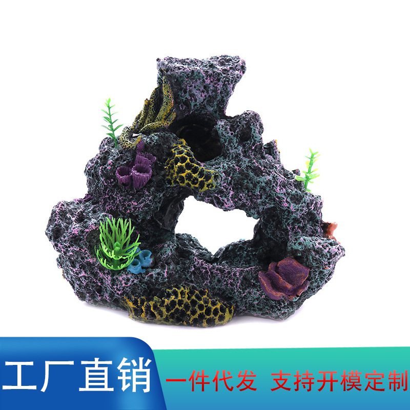 • 水族鱼缸造景装饰摆件饰品跨境货源环保树脂仿真火山彩色珊瑚石