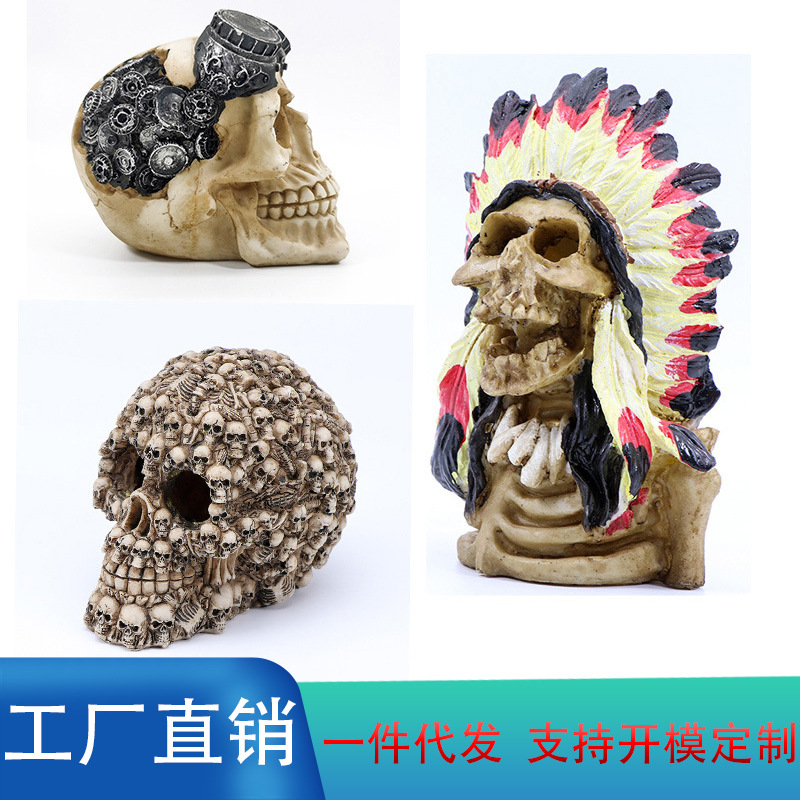 • 创意虾屋万圣节人骨恐怖爬虫装饰鱼缸造景装饰树脂摆件仿真骷髅头