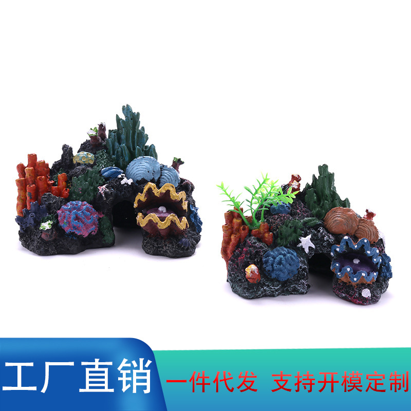 • 跨境海缸海底世界孔洞虾屋 水族馆树脂摆件鱼缸造景装饰珊瑚礁石