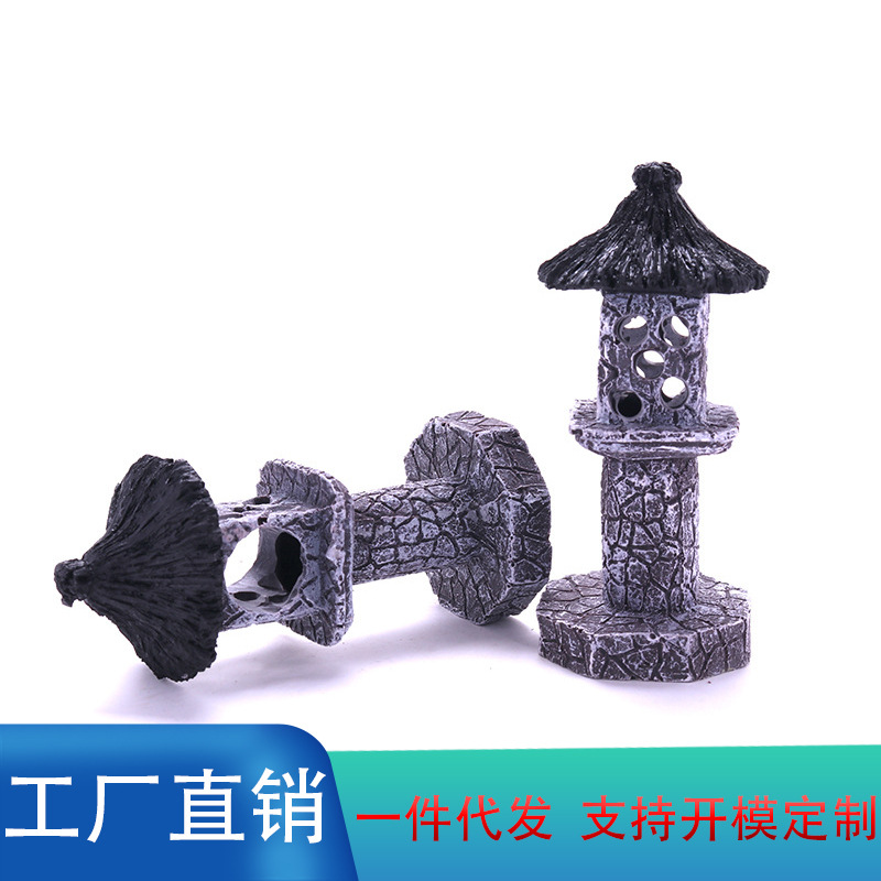 • 水族馆水族用品鱼缸造景装饰摆件鱼虾躲避树脂石灯笼石雕地灯虾屋